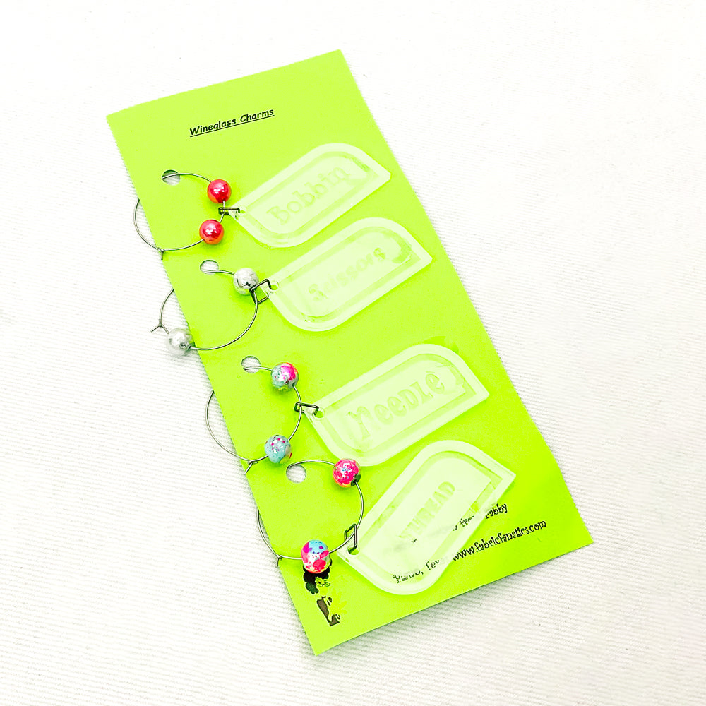 Wineglass Charms Set Of Four with Different Sayings Fabric Fanatics Bead color 1