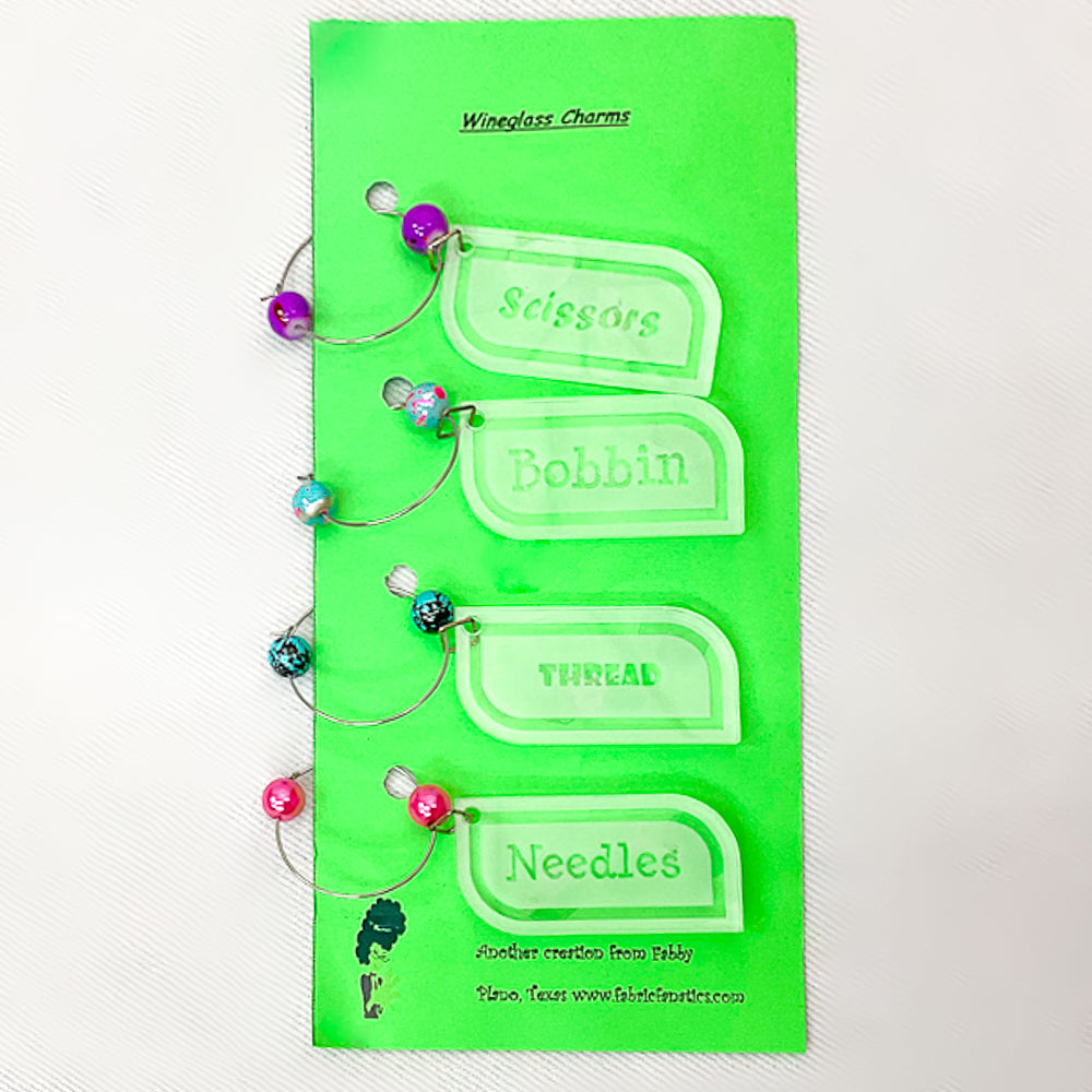 Wineglass Charms Set Of Four with Different Sayings Fabric Fanatics Bead color 2