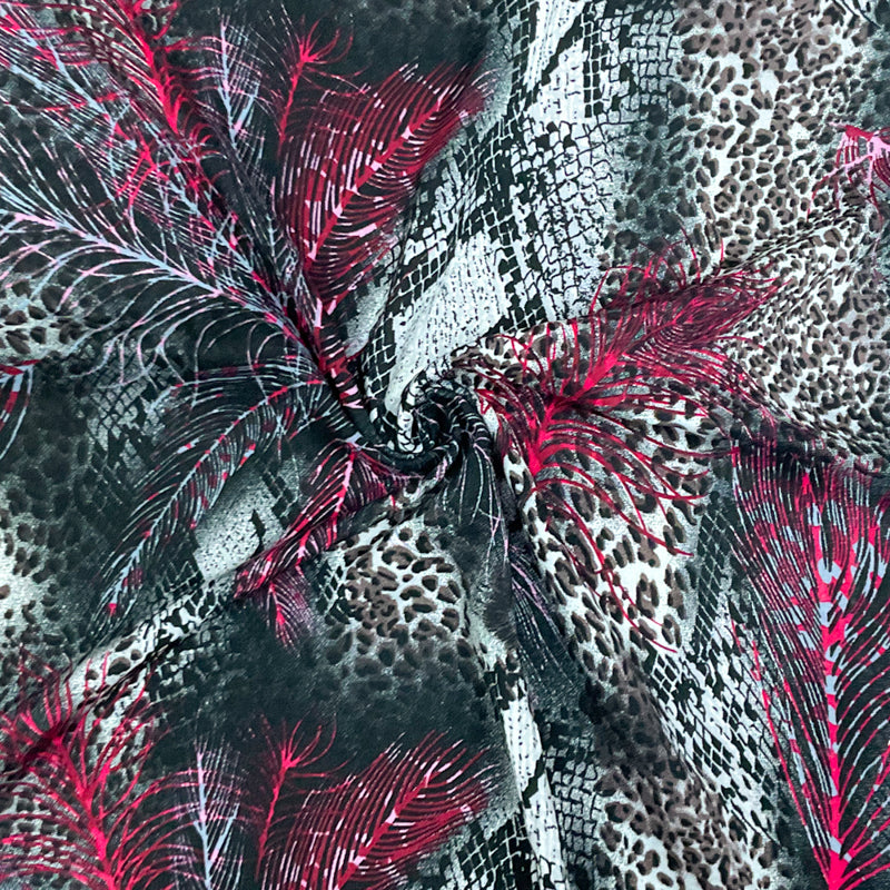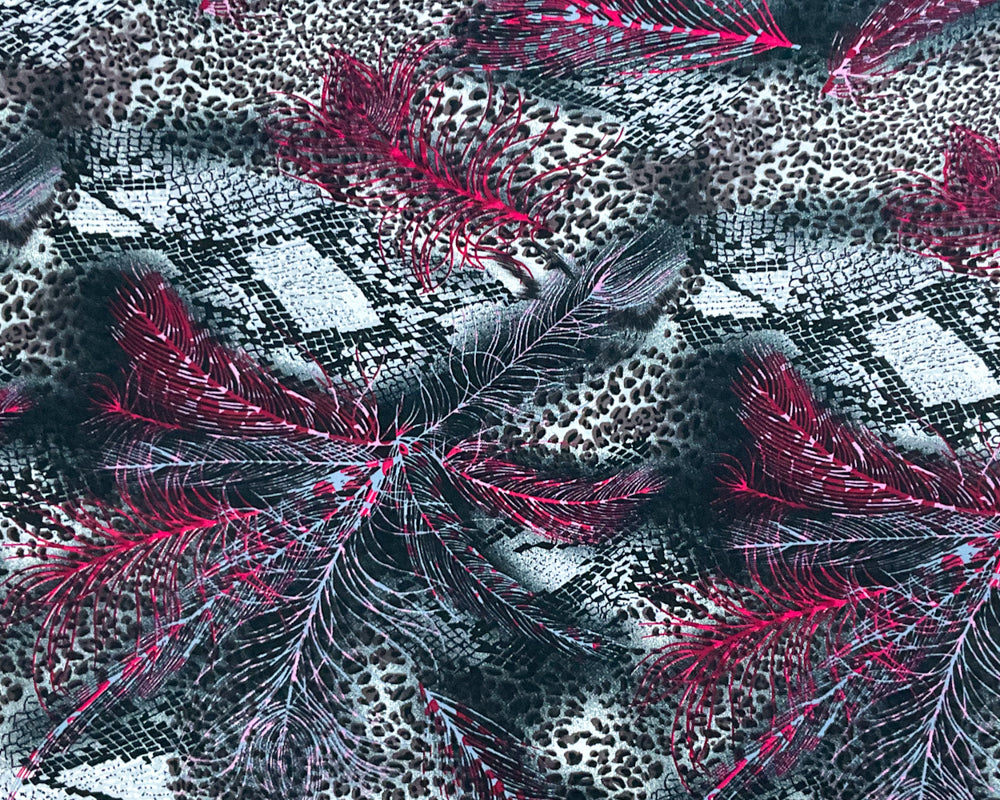 Black-Red-Multi Rayon Animal Printed Challis Woven Fabric