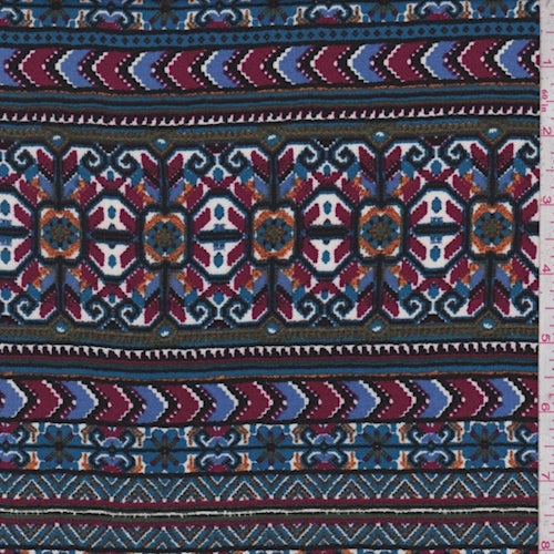 Mulberry/Periwinkle Blue Deco Stripe Rayon Challis Fabric