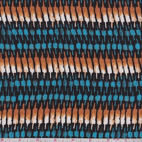 Black/Aqua/Gold Deco Stripe Rayon Challis Fabric