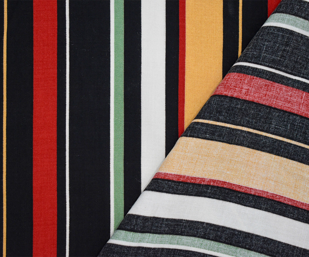 Black-Red-Multi Rayon Stripe Printed Challis Woven Fabric