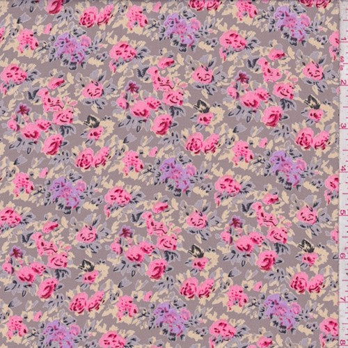 Ecru Beige/Pink Multi Floral Printed Crepe Faille Fabric