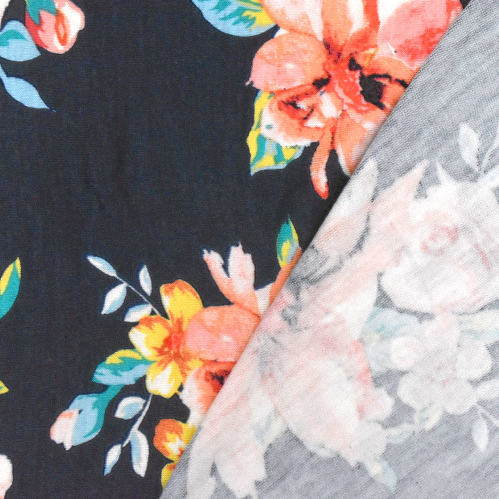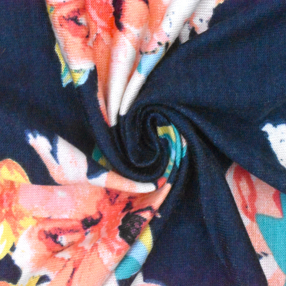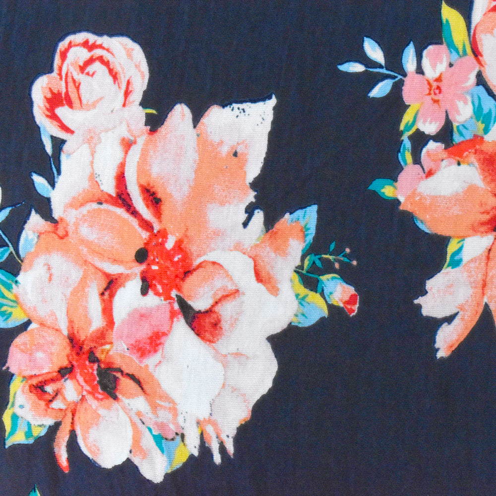 Navy-Multi Floral Printed Rayon Stretch Jersey Knit Fabric