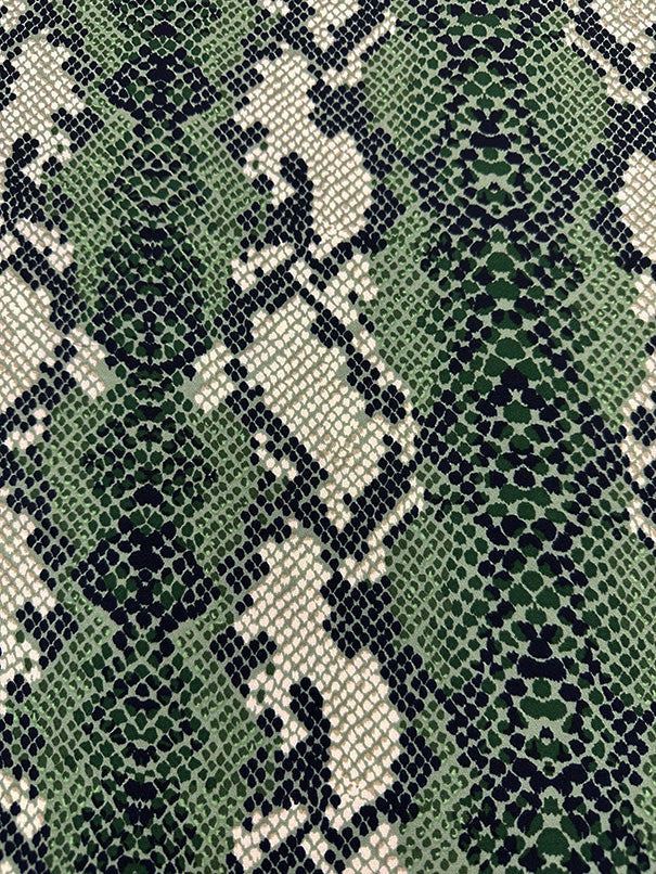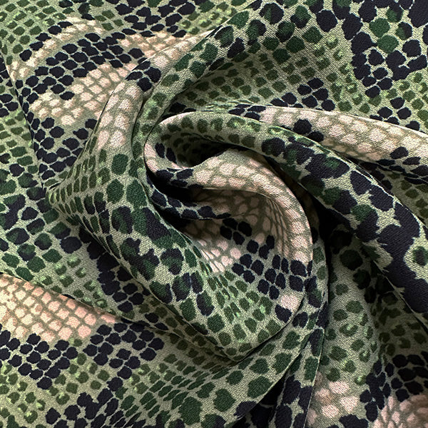 1 1/2 YD PC -Shades of Green, Black, & Off White Multi Snakeskin Animal Print Poly Georgette Fabric