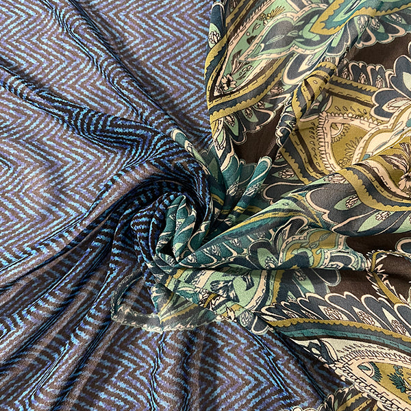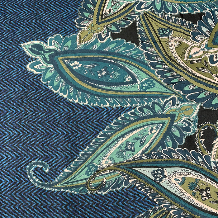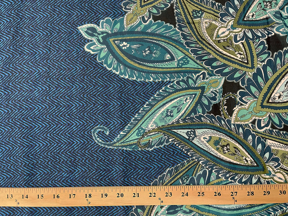 2 1/2 YD PC-Turquoise and Black Herringbone Paisley Print Chiffon Fabric