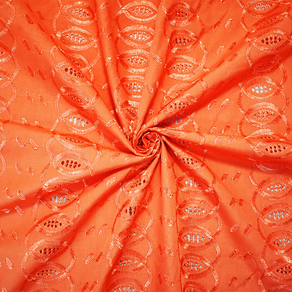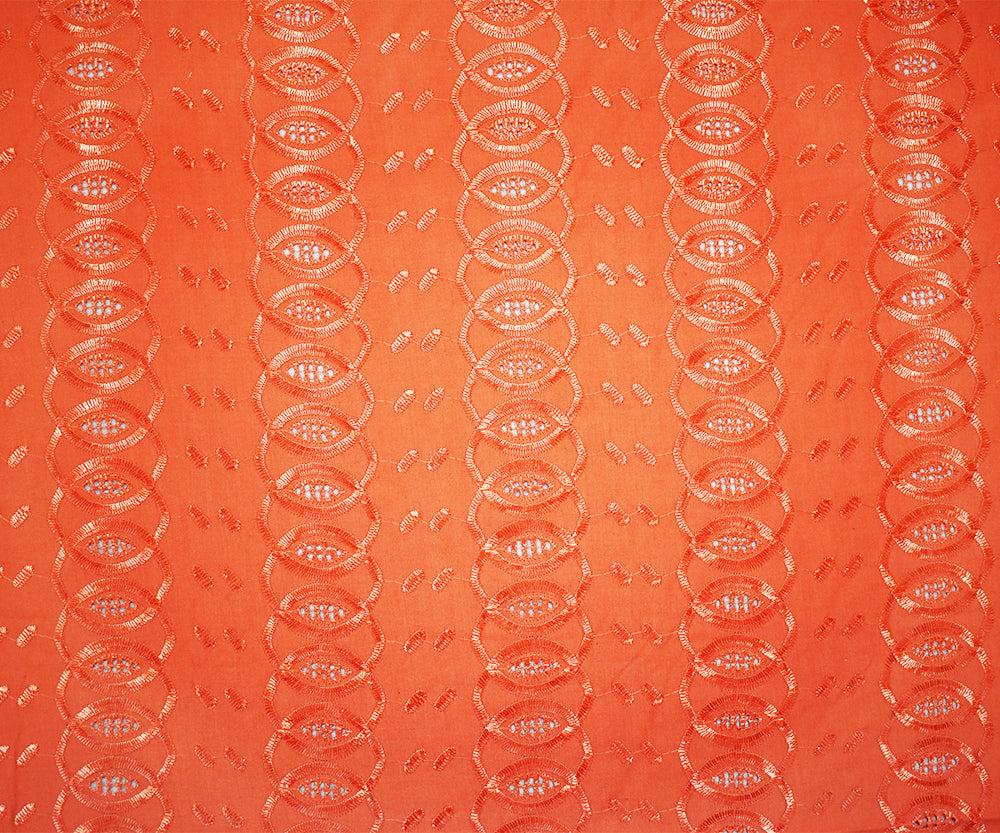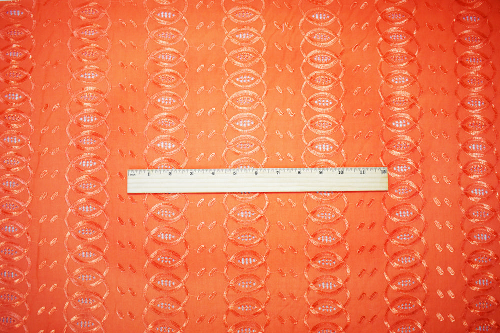 3 1/2 YD PC-Orange Poly-Cotton Embroidered Abstract Leaves Scallop Woven Fabric
