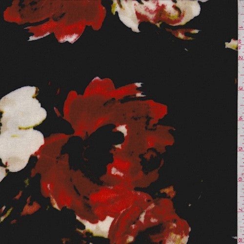 1 1/2 YD PC -Beautiful floral pattern printed on a high lustrous velvet knit fabric