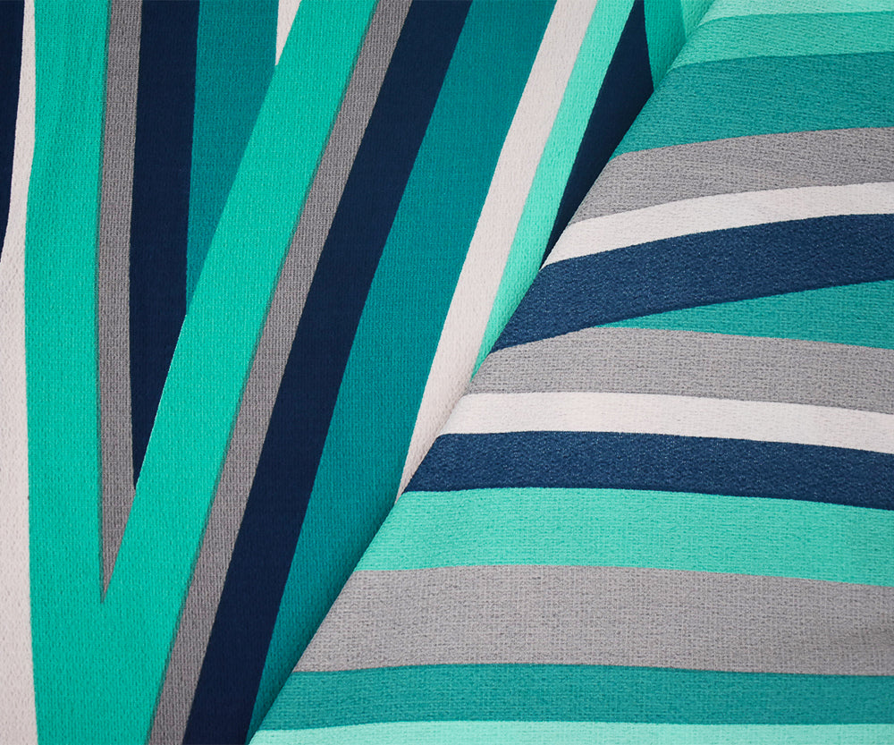 Turquoise-Multi Abstract Geometric Stripe Printed Pebble Georgette Fabric
