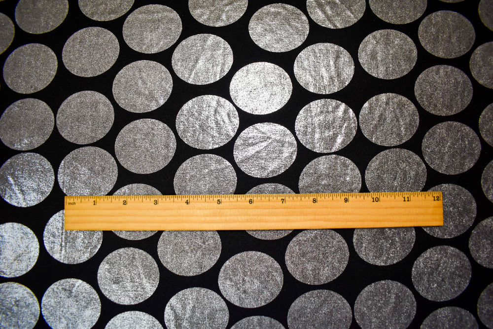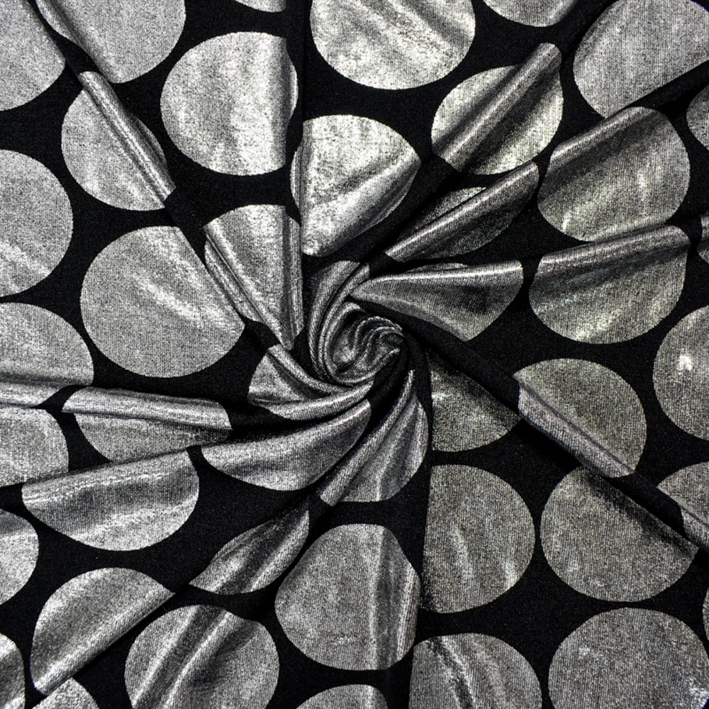 Silver-Black Poly Blend Spandex Foil Dot Printed Slinky Knit Fabric