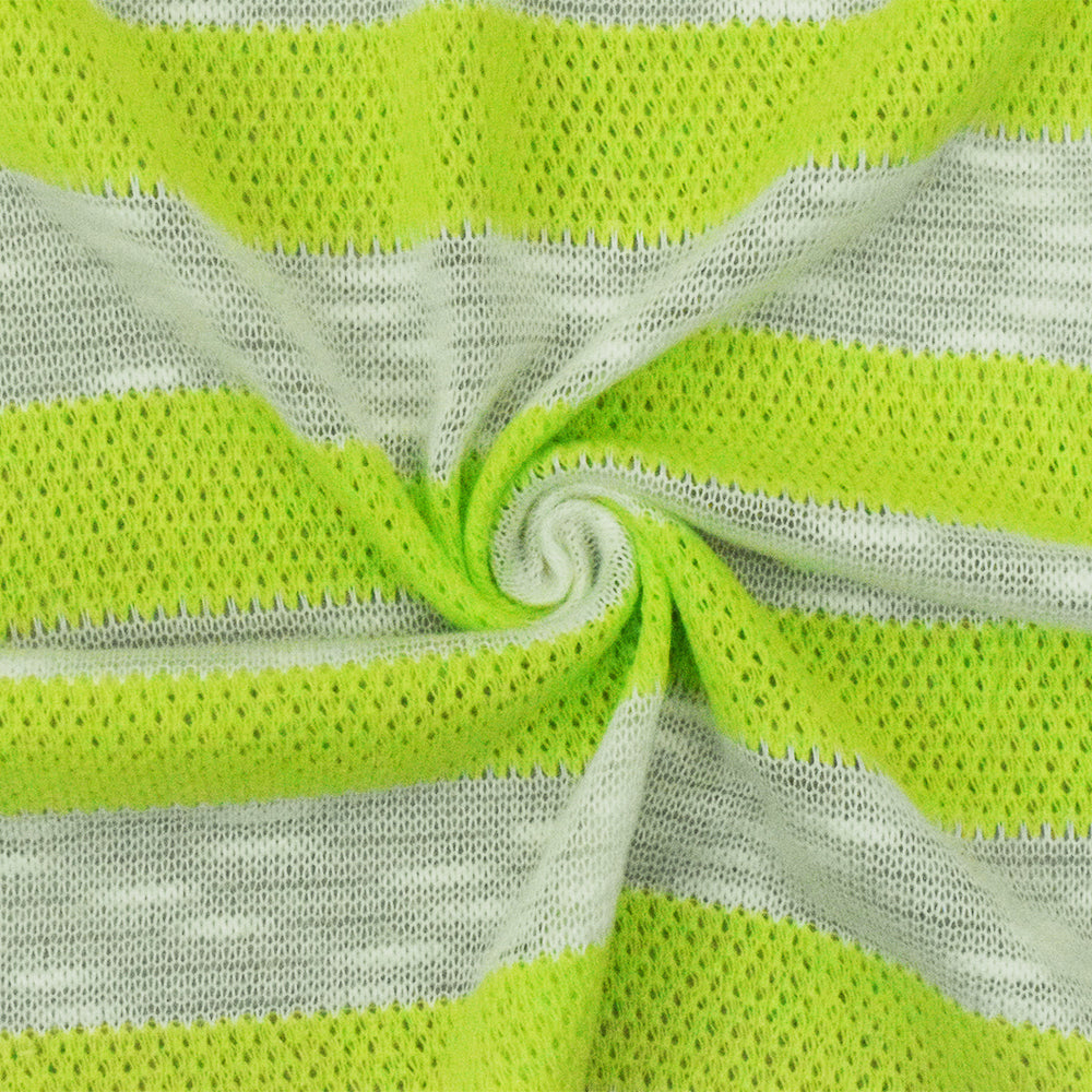 Lime Green-White Stripe Slub Poly Cotton Sweater Knit Fabric
