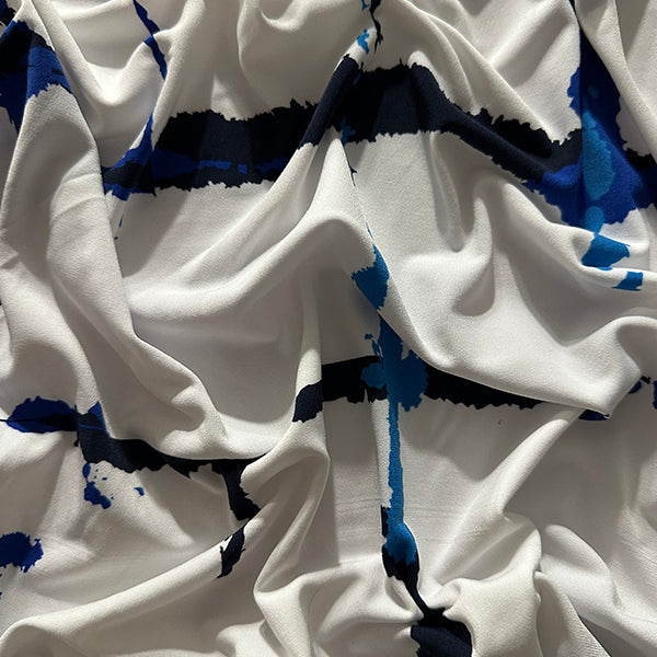 Blue Abstract Check Print ITY Jersey Knit Fabric