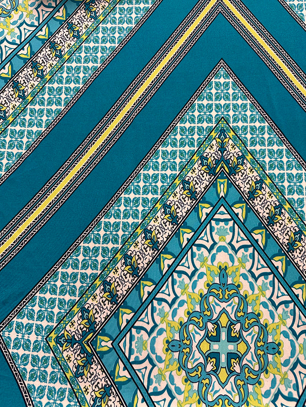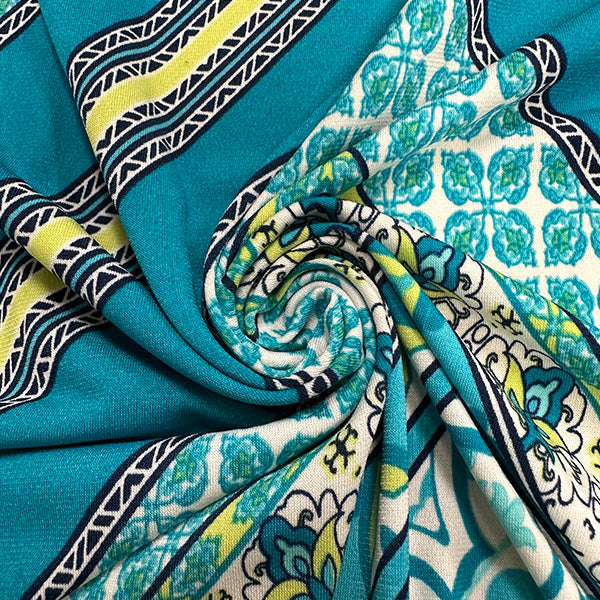 Teal Multi Geometric Multi Print ITY Jersey Knit
