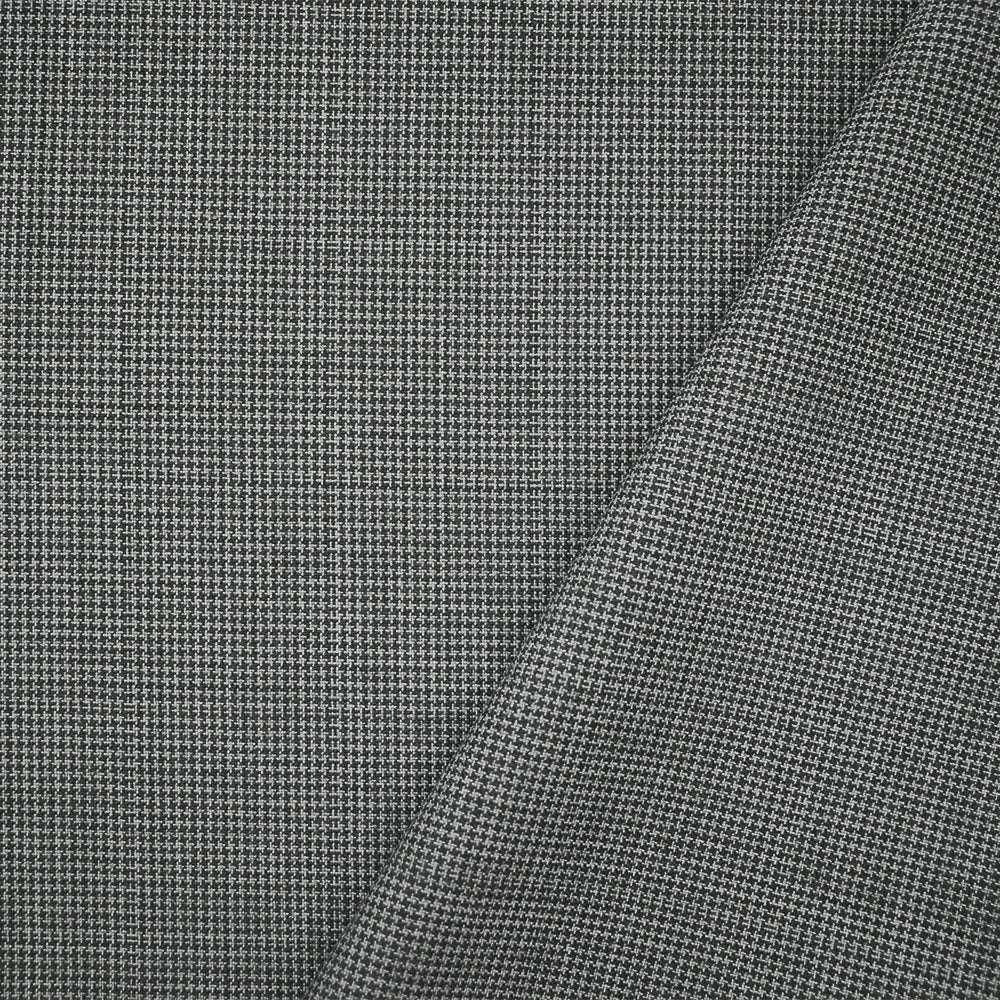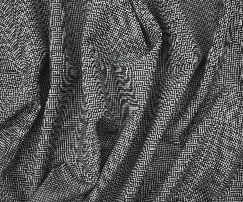 Gray-Black Poly-Wool Houndstooth Check Shirting Woven Fabric