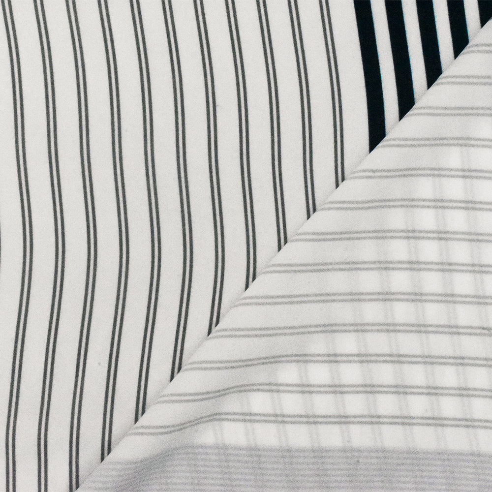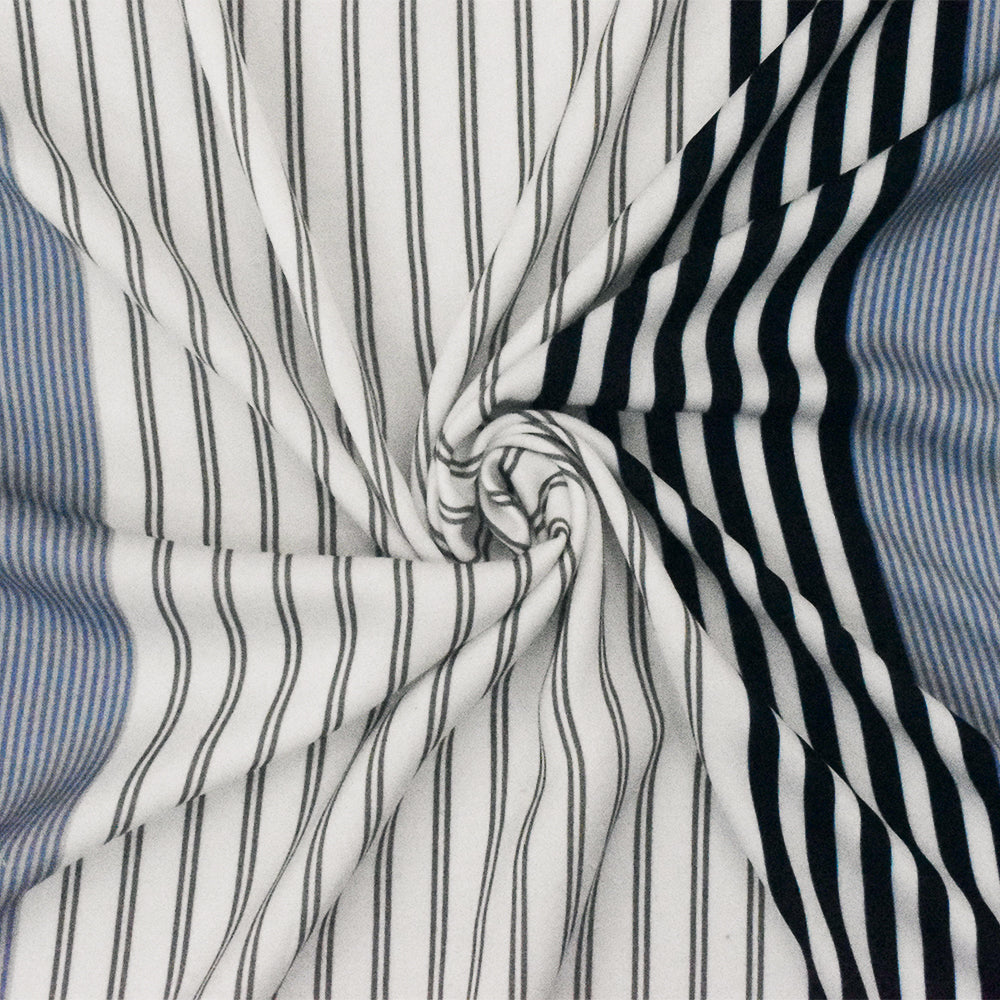 Basic White-Blue-Multi Stripe Printed Poly Twill Woven Fabric