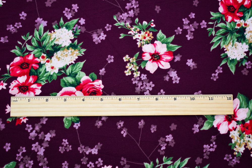 Deep Burgundy-Multi Poly Floral Printed Pebble Crepe Woven Fabric