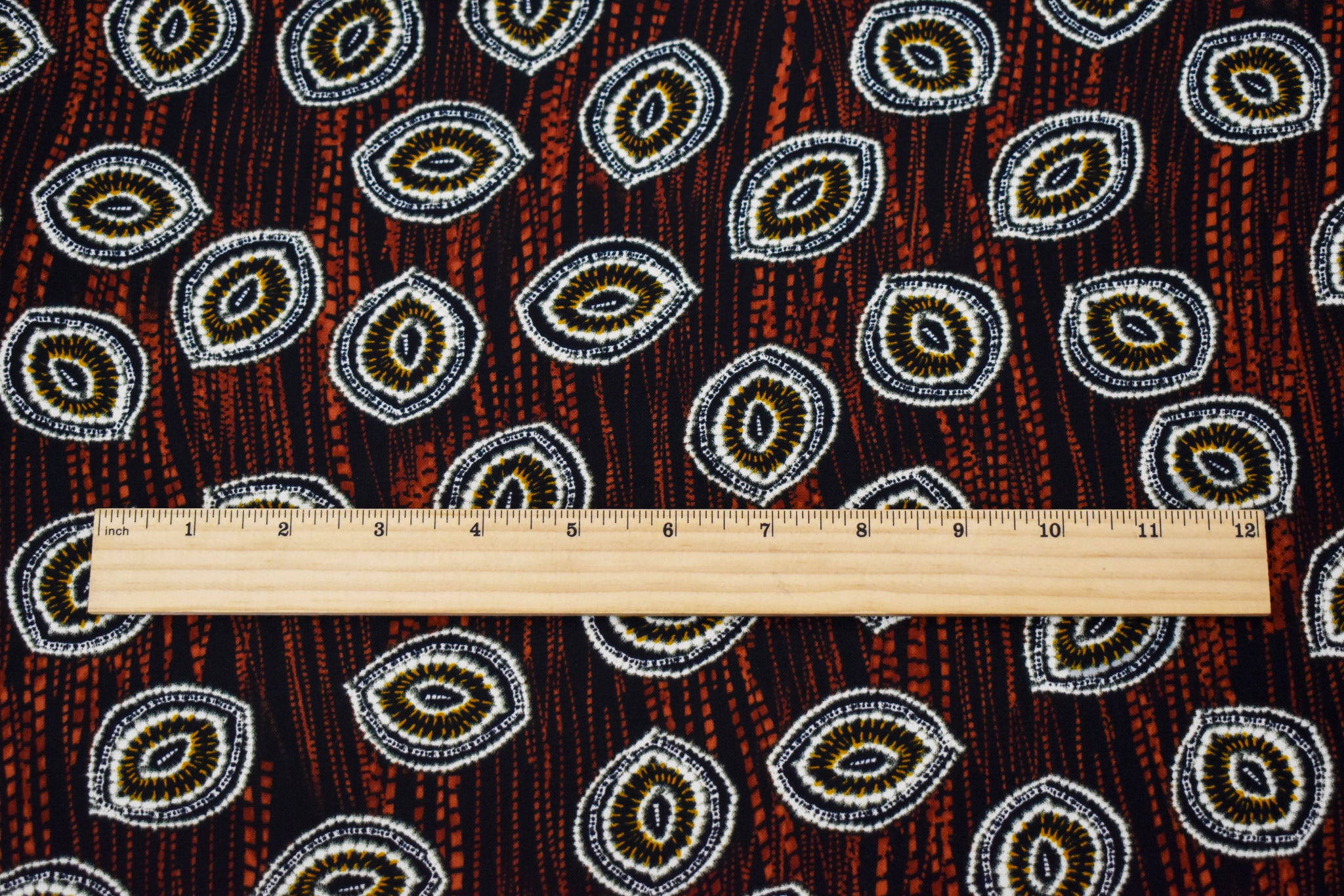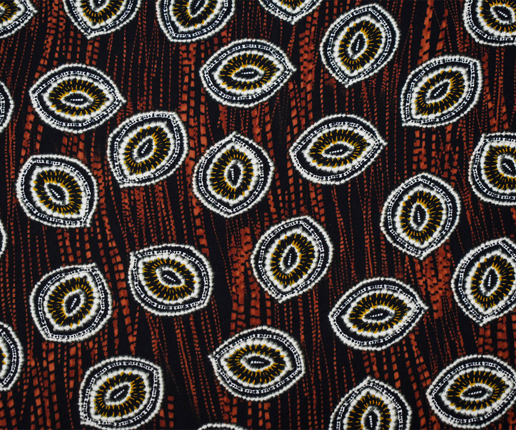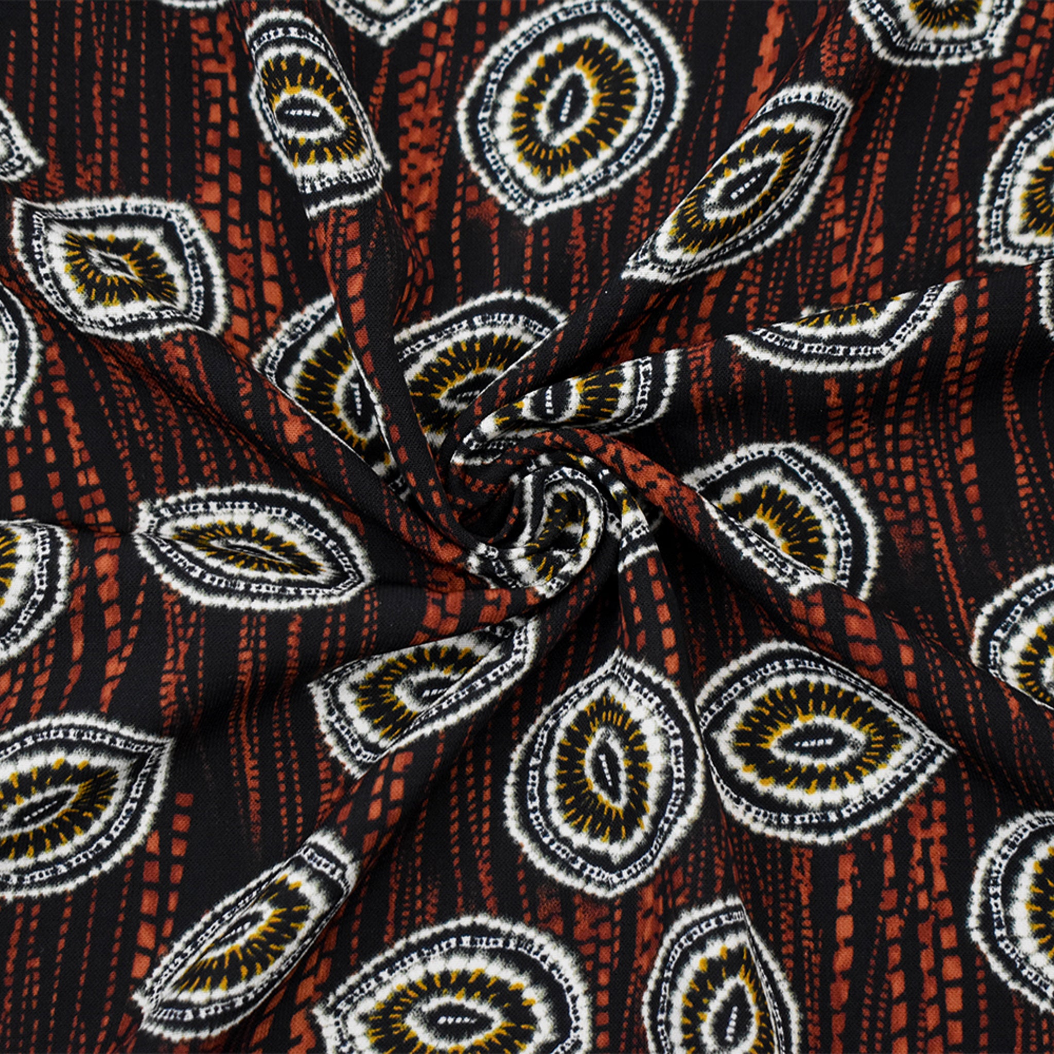 Black-Red-Multi Abstract Tie Dye Printed Poly Challis Woven Fabric