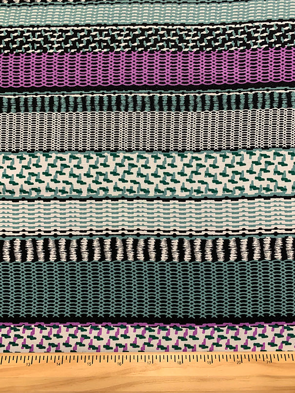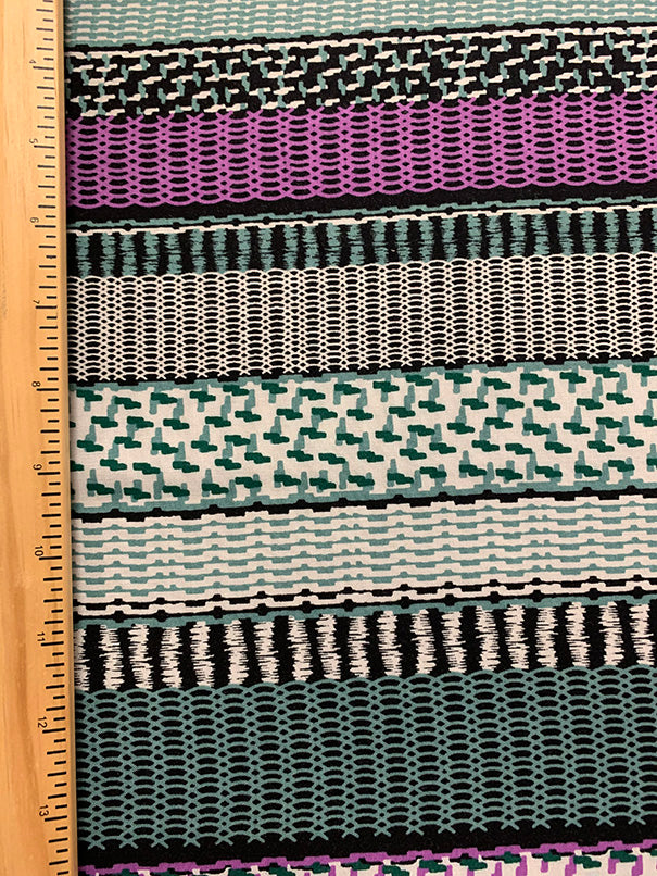 Purple and Aqua Multi Stripe Print Rayon Challis Fabric