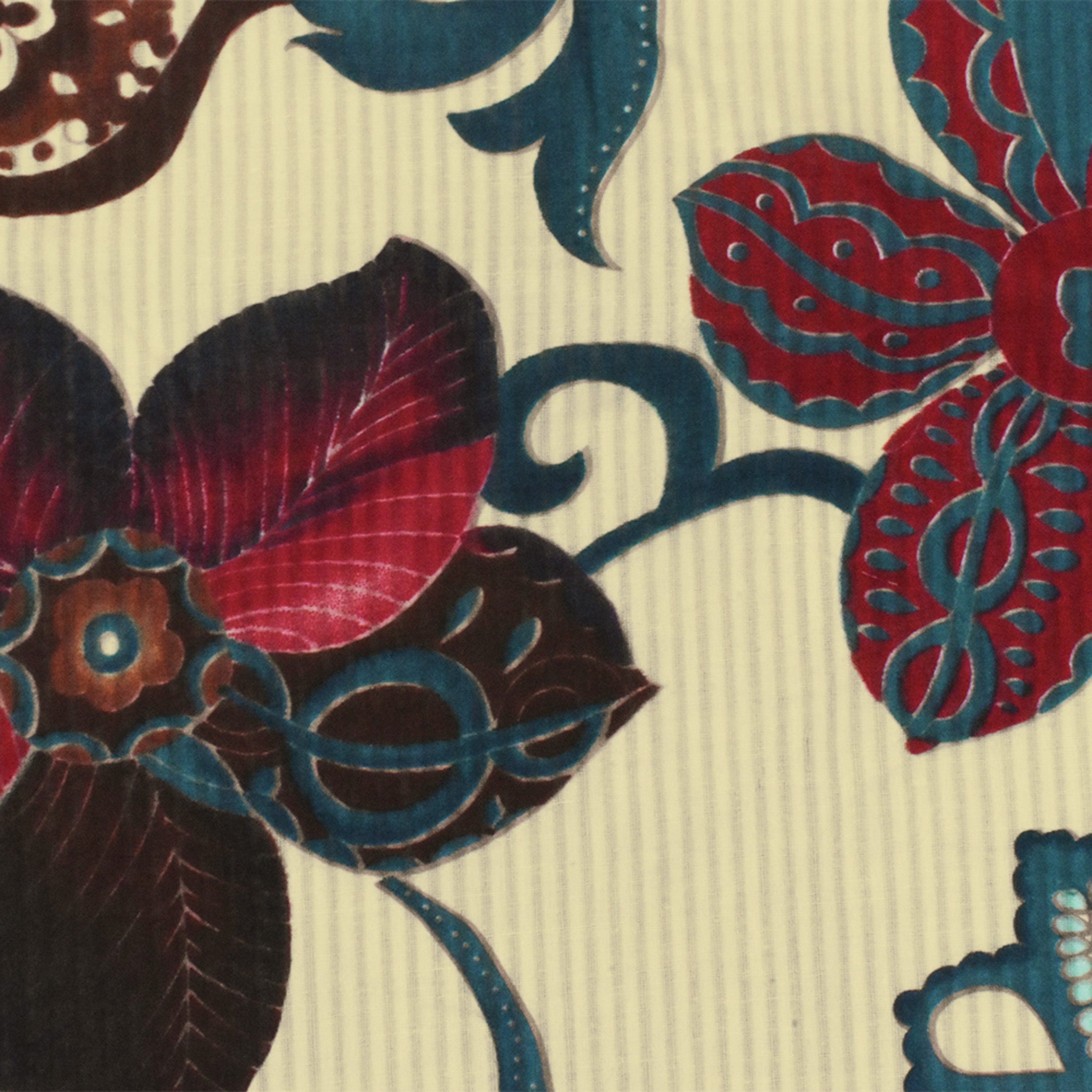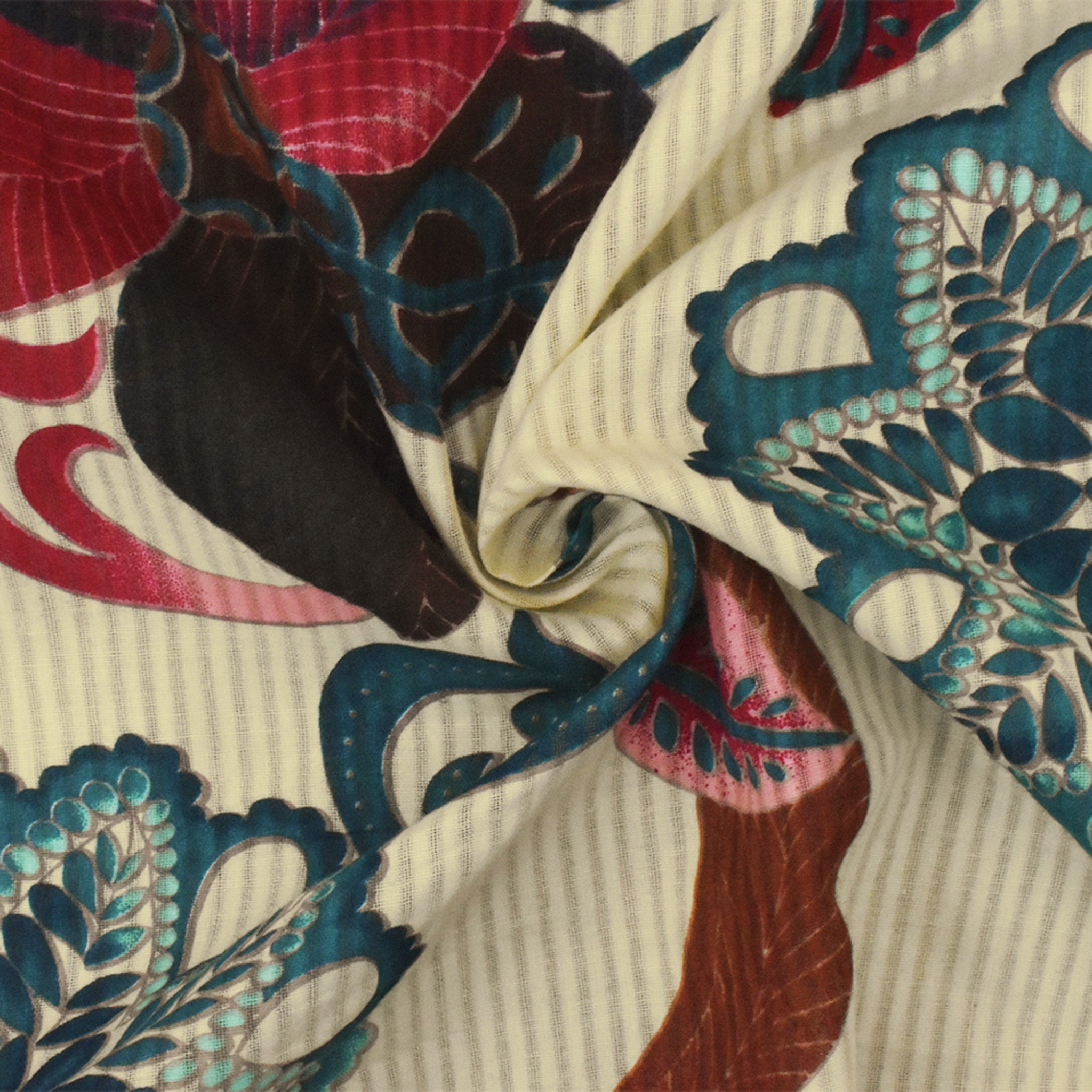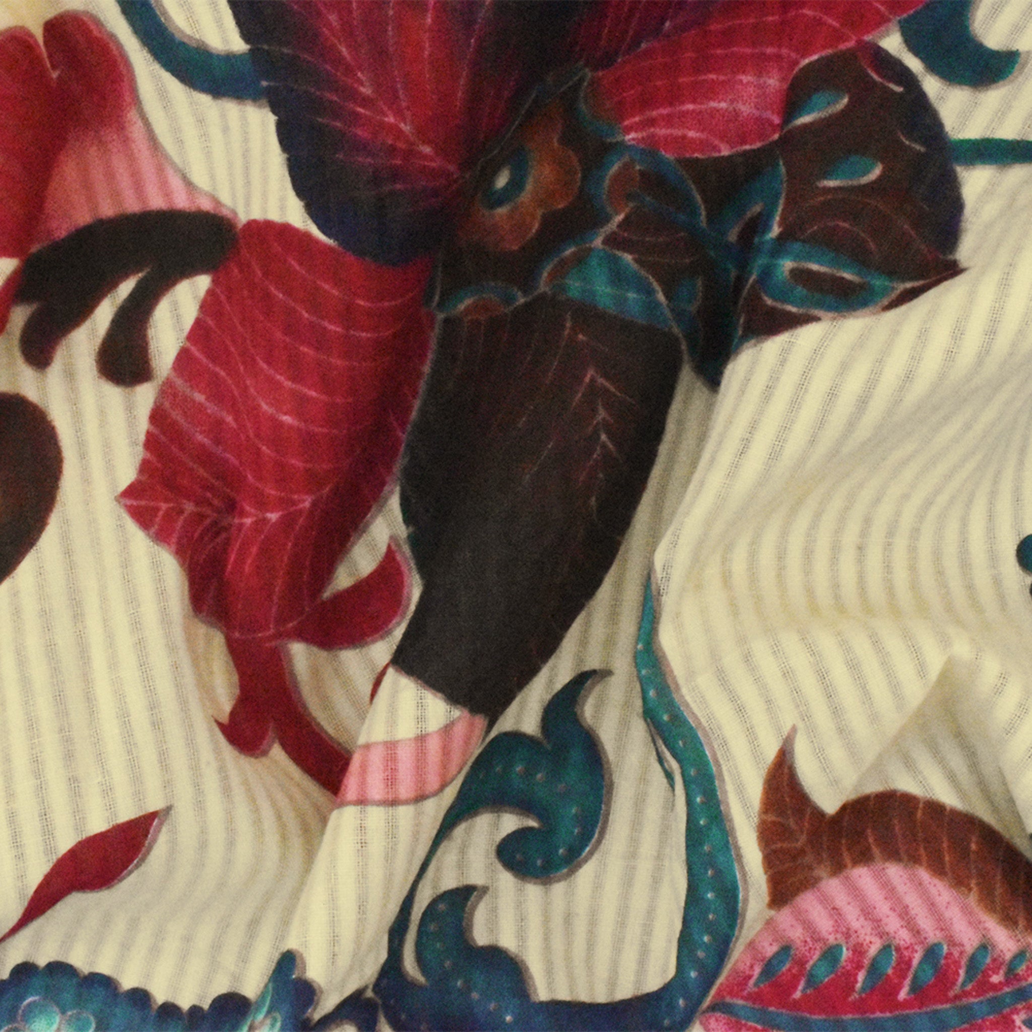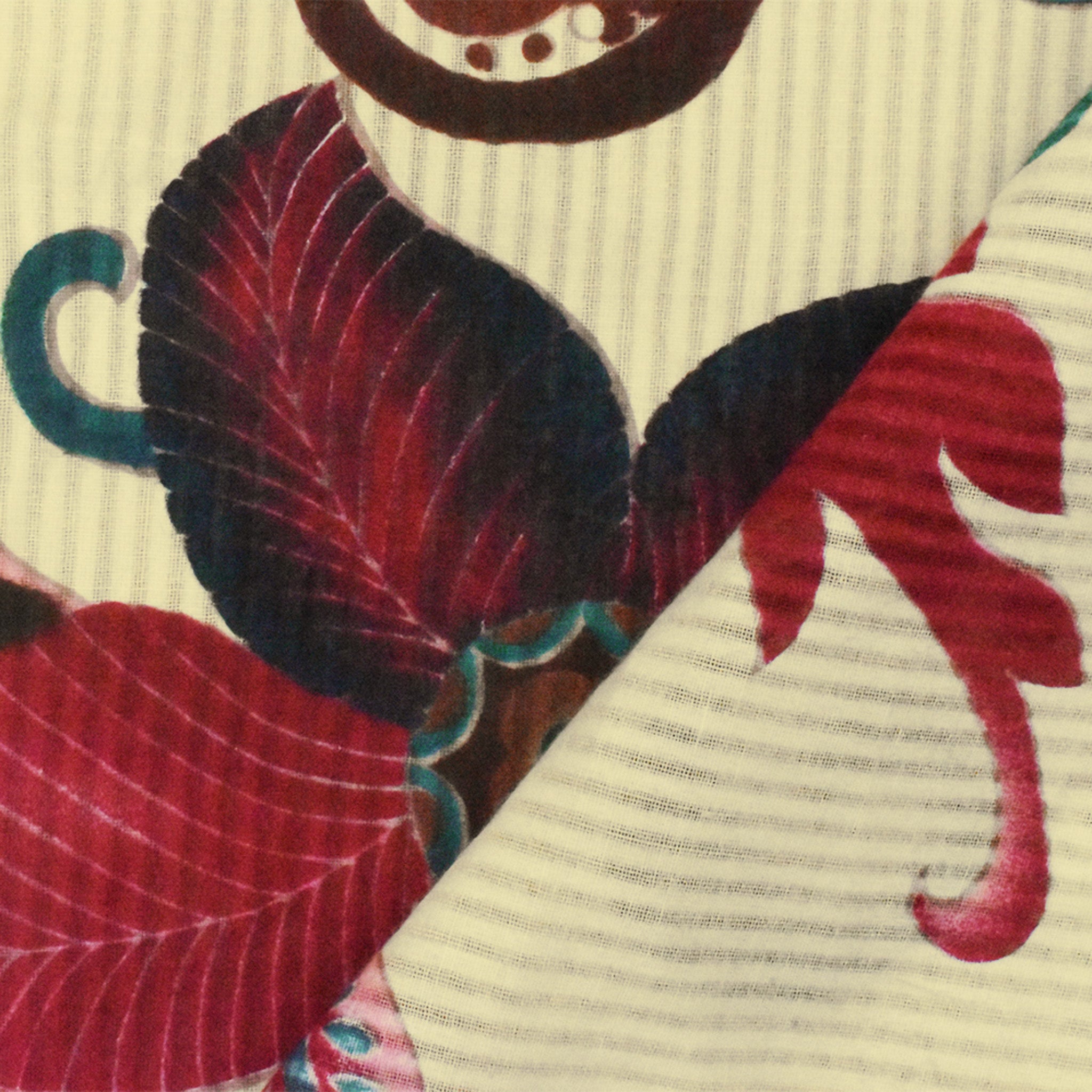 -100% cotton floral printed striped leno woven fabric, line if needed