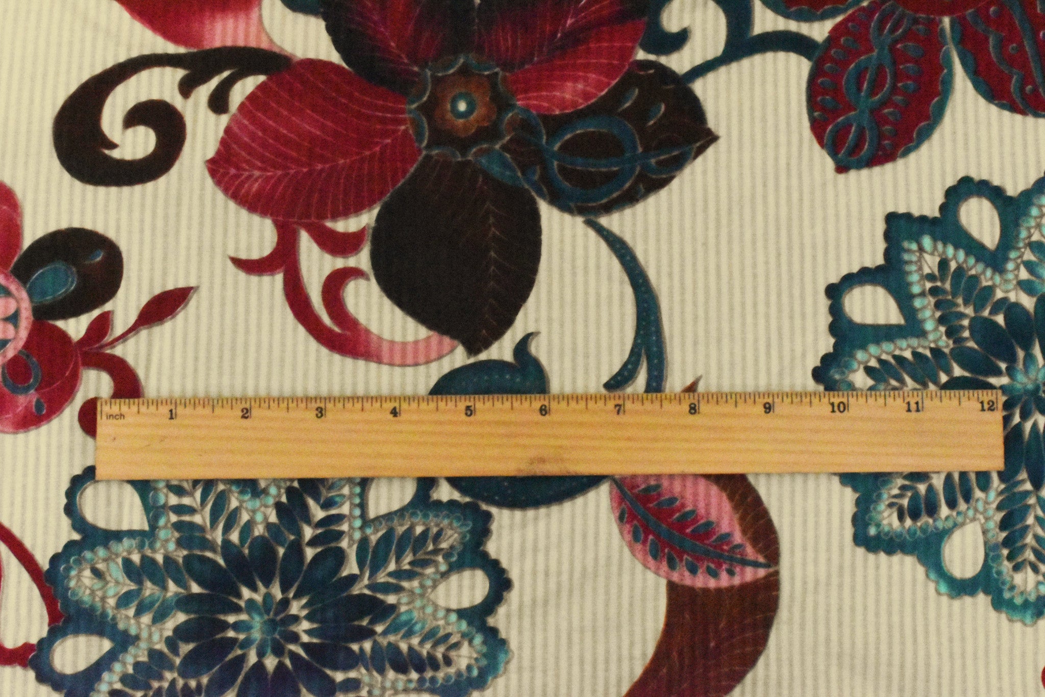 Beige-Brown-Multi Floral Printed Cotton Striped Leno Woven Fabric