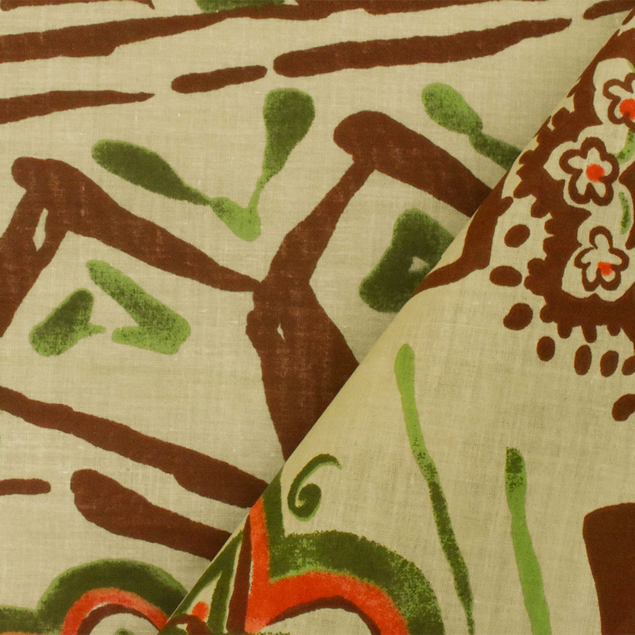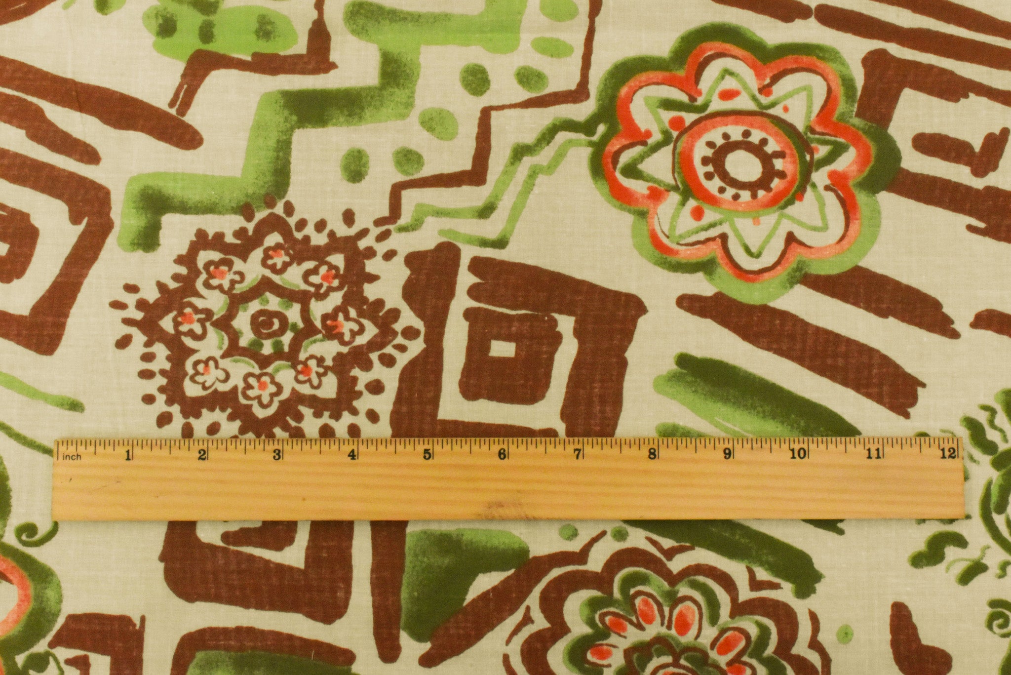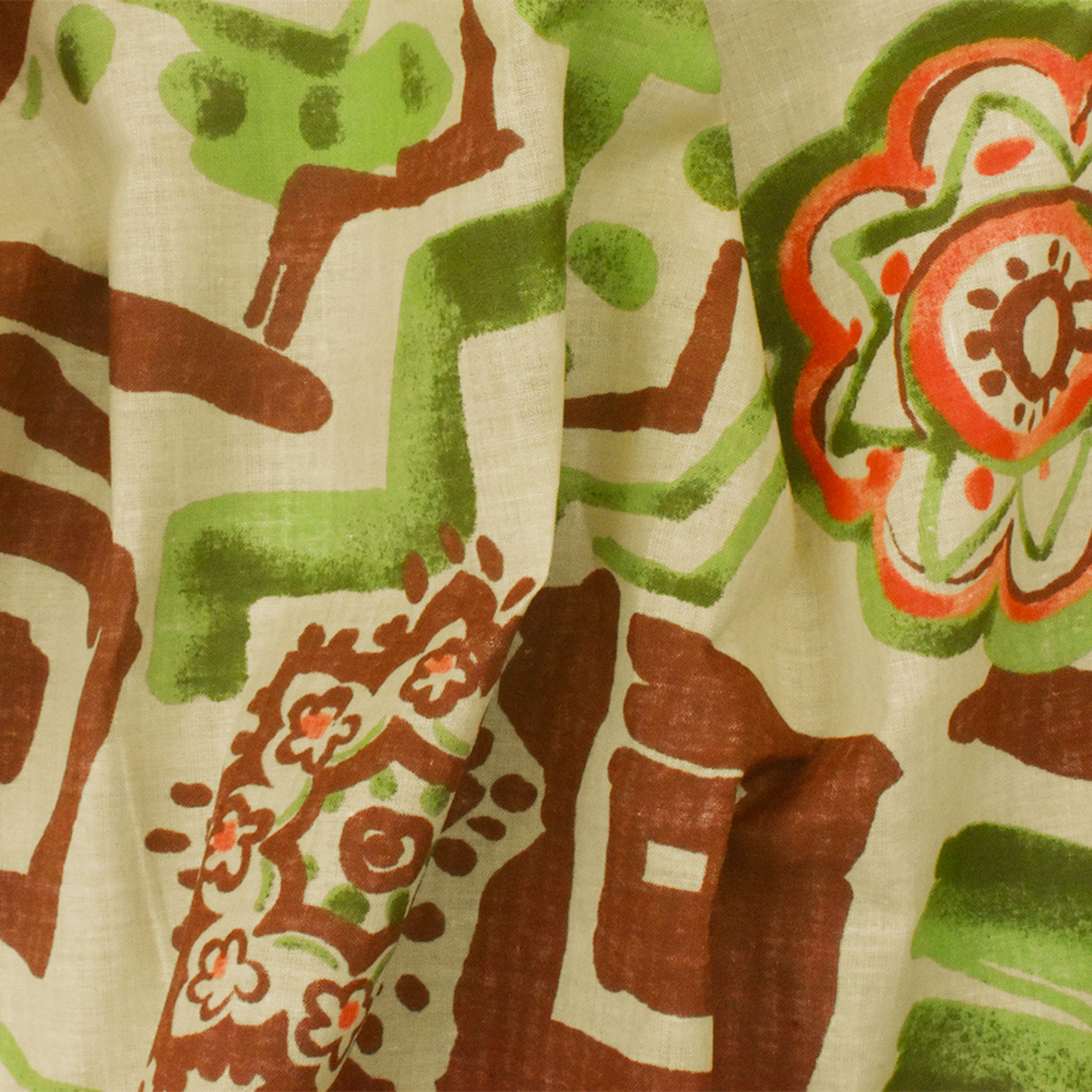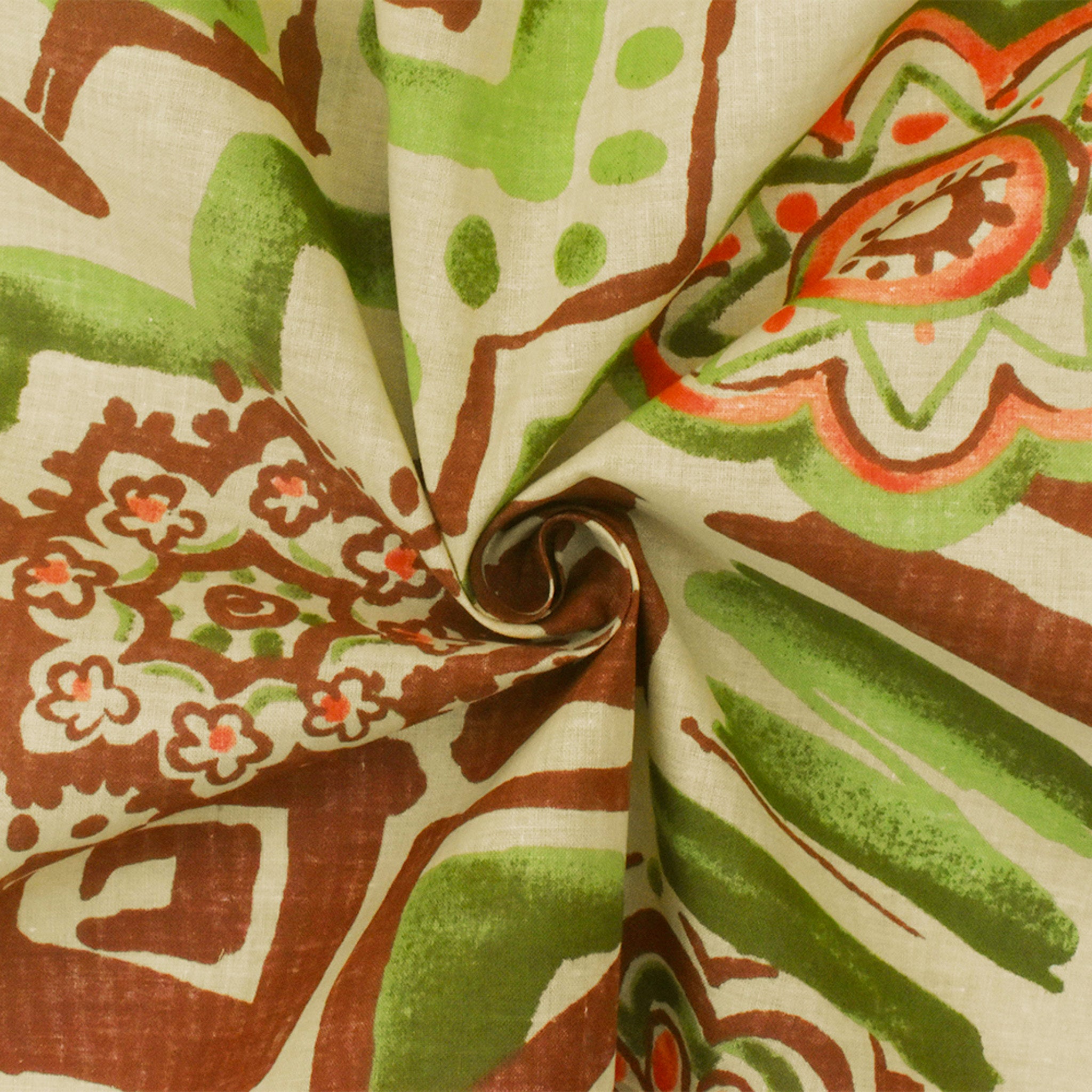 Beige-Green-Multi Aztec And Floral Printed Cotton Batiste Woven Fabric