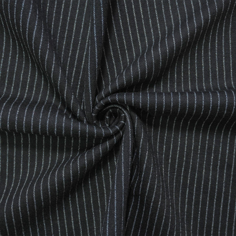 Black-Gray Wool Blend Stretch Stripe Jacquard Double Knit Fabric