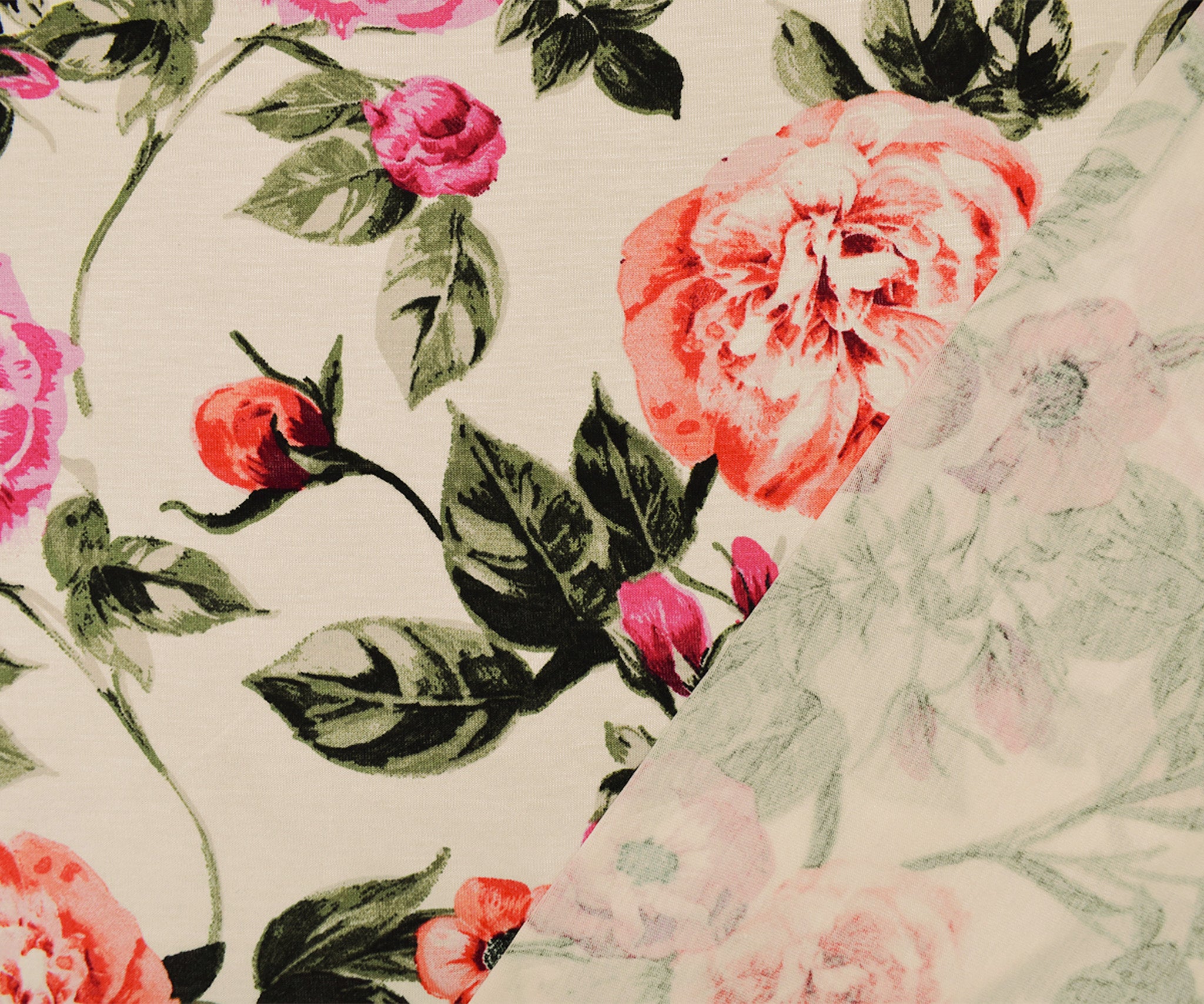 Ivory-Multi Rayon Stretch Spandex Floral Print Jersey Knit Fabric