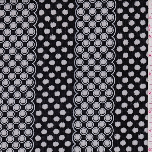 -Fine polyester mesh with a screen printed circular eyelet design outlined in white