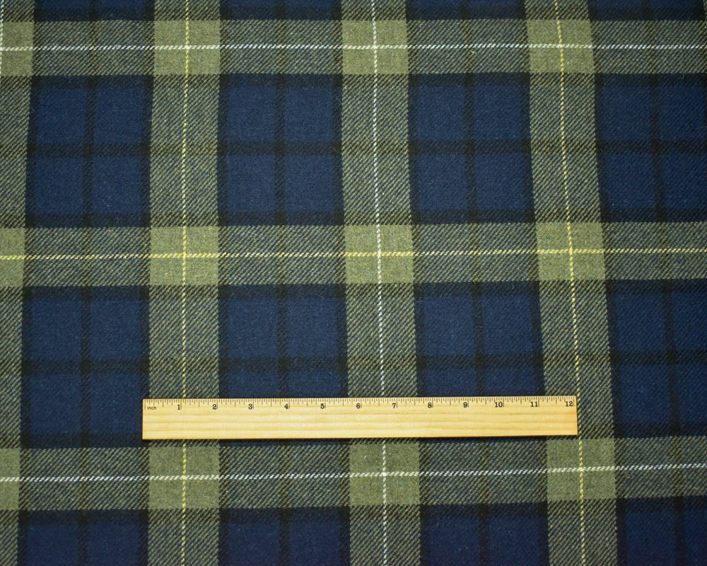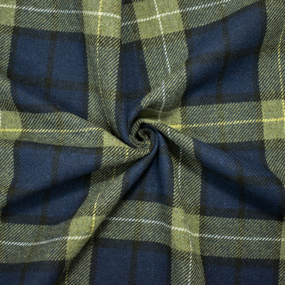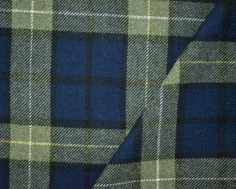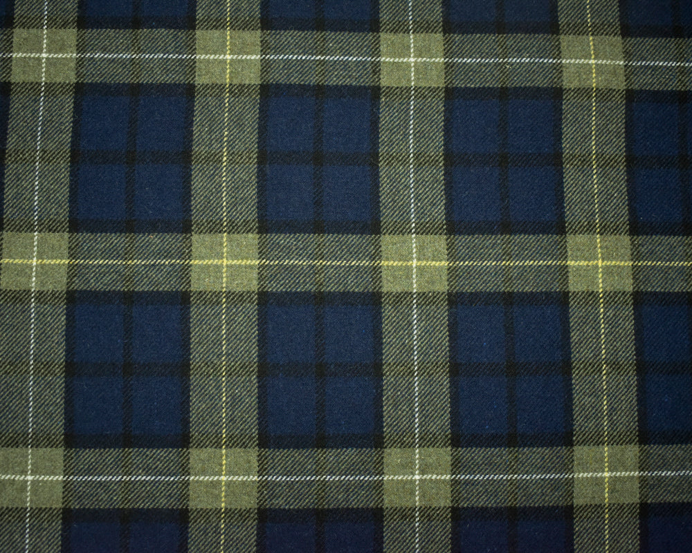 Navy-Green-Multi Wool-Poly Plaid Twill Woven Jacketing Fabric