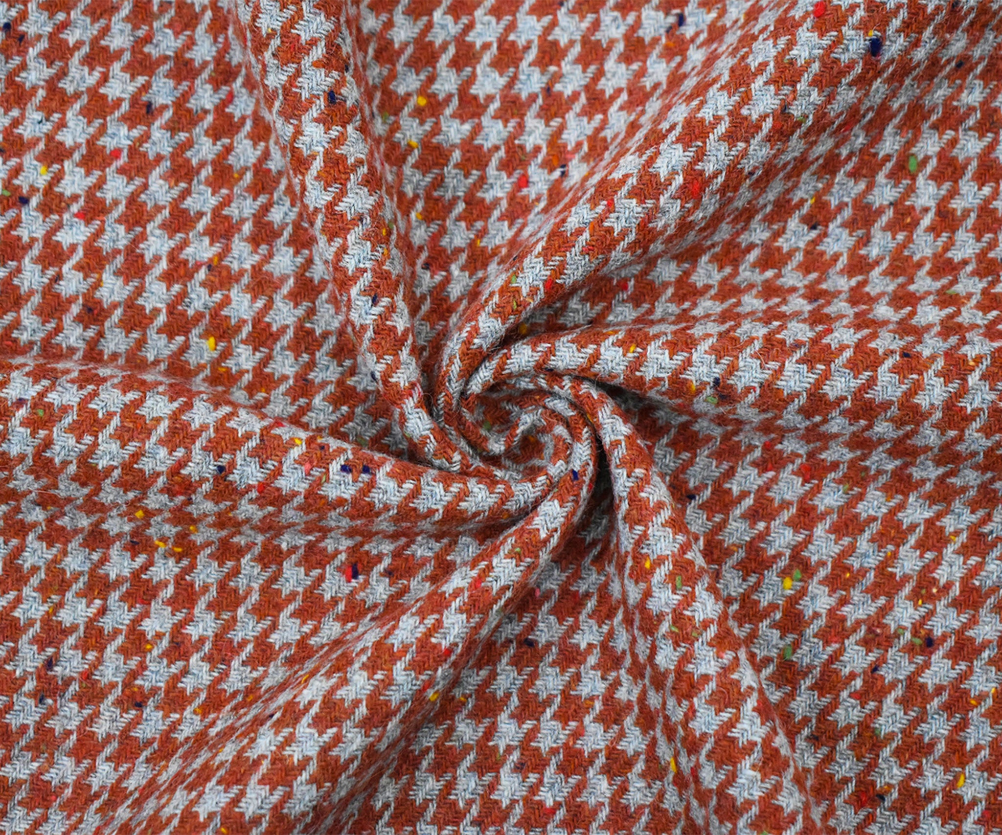 Orange-Gray Wool Houndstooth Woven Jacketing Fabric
