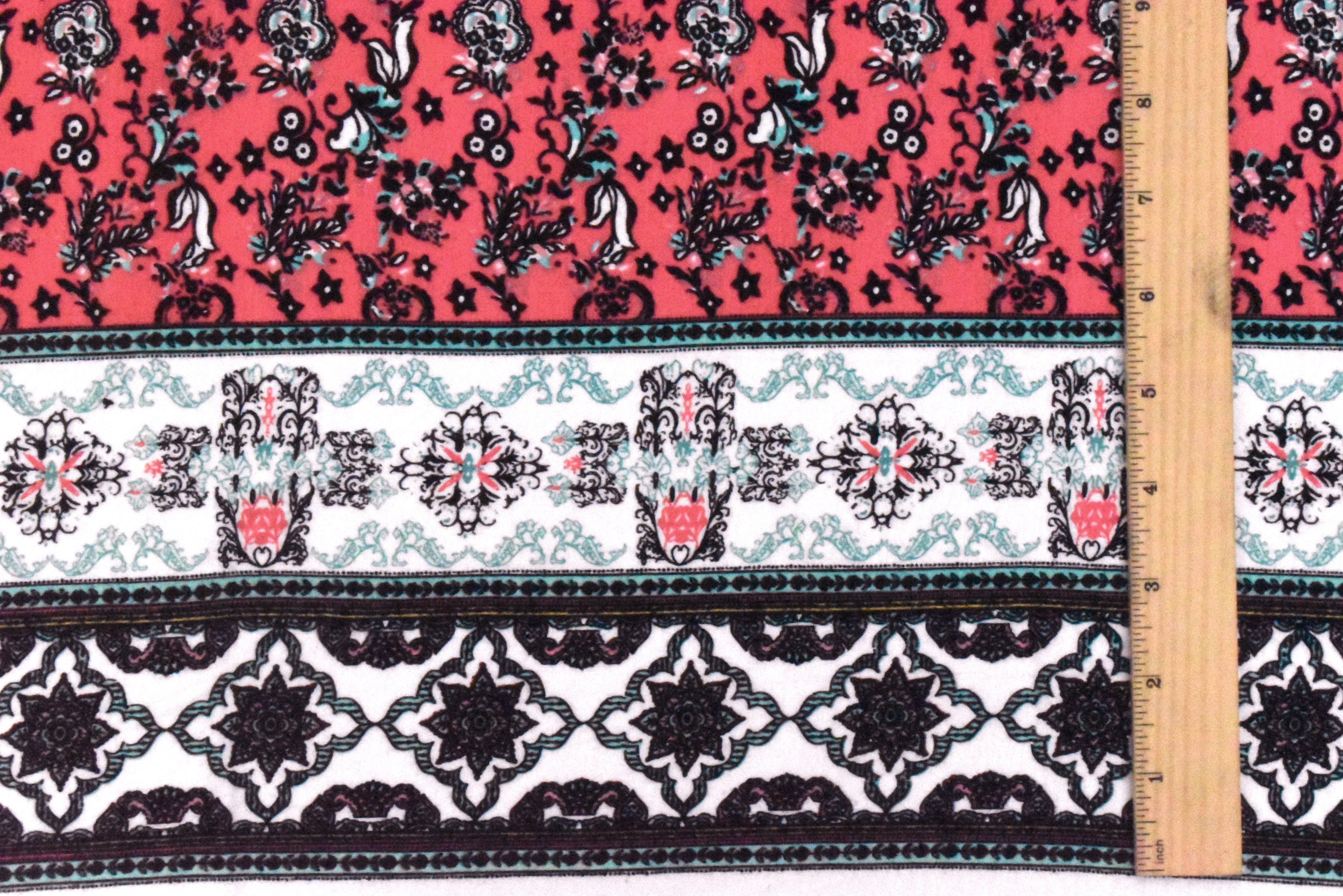 Lollipop-Ivory-Multi Moroccan Border Print Rayon Stretch Jersey Knit Fabric