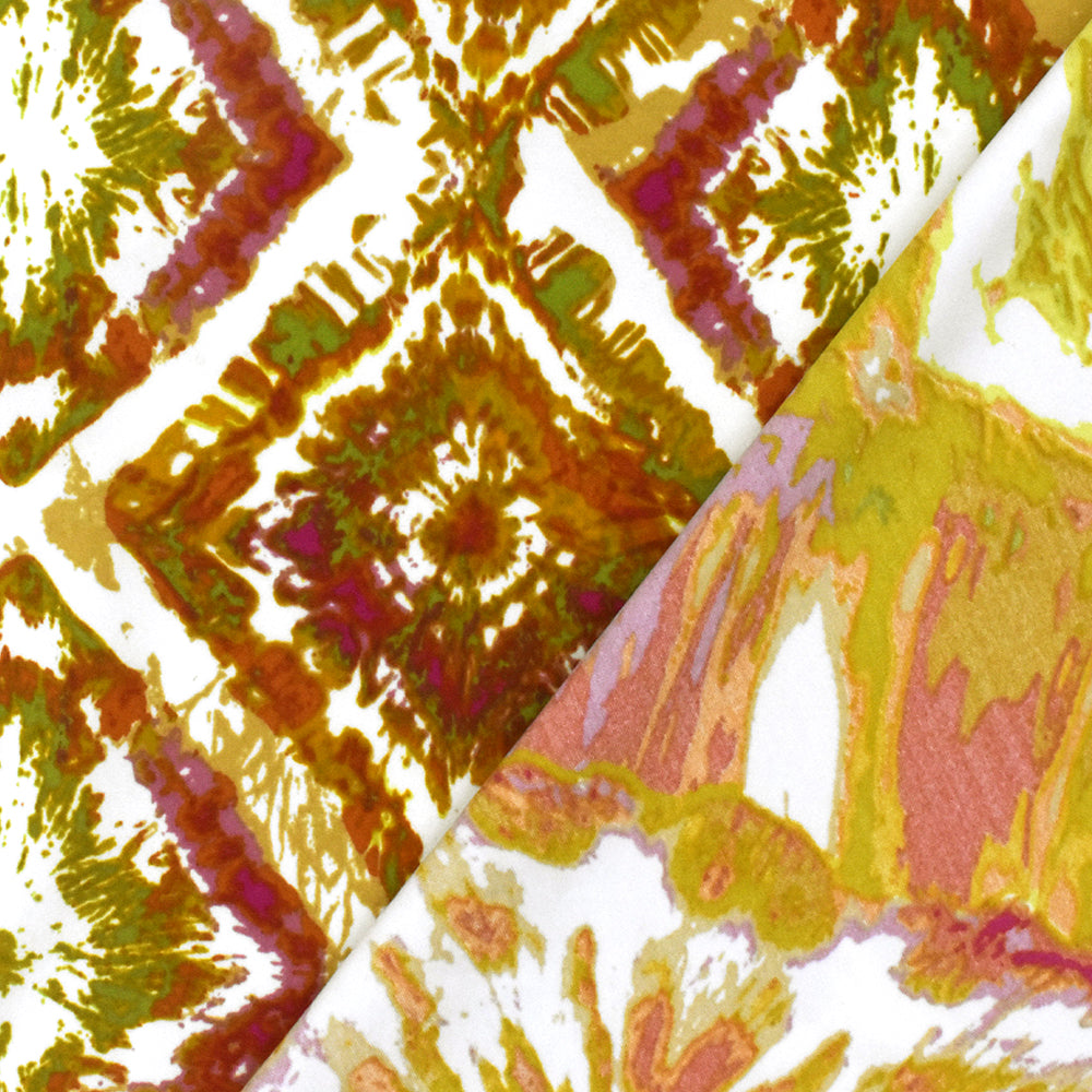 Orange-Multi Art Diamond Printed Swimwear Stretch Nylon Tricot Knit Fabric