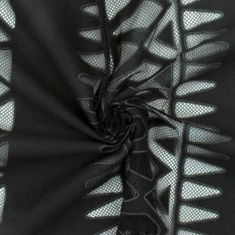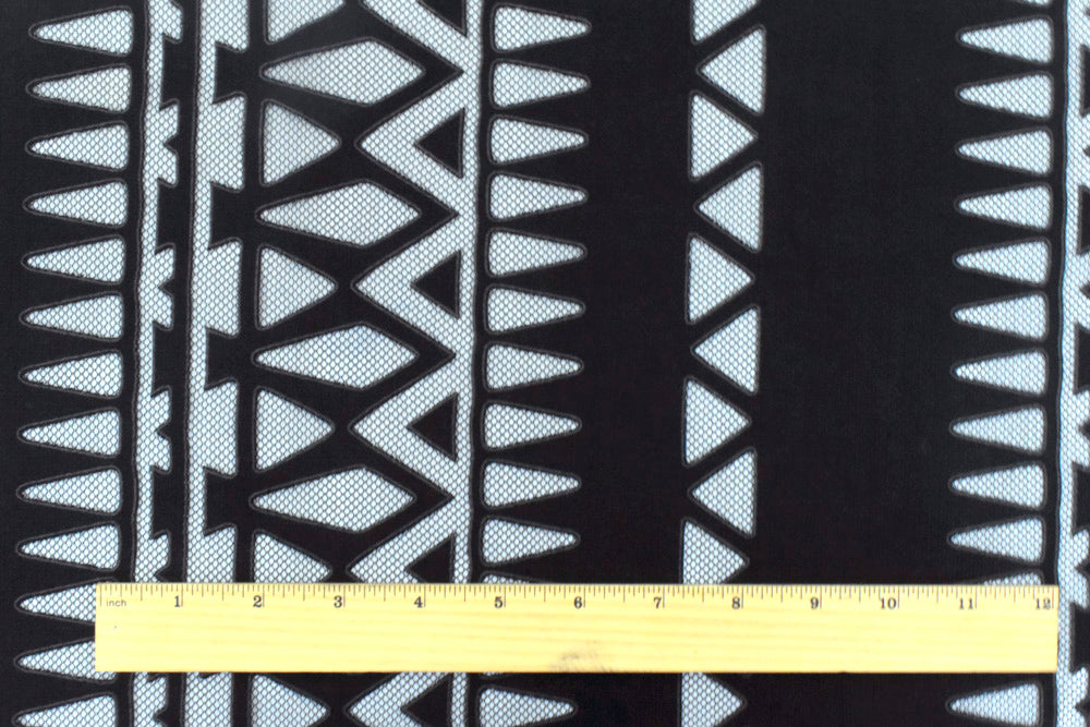 Black-Gray Tribal Printed Cotton-Poly Burnout Mesh Fabric