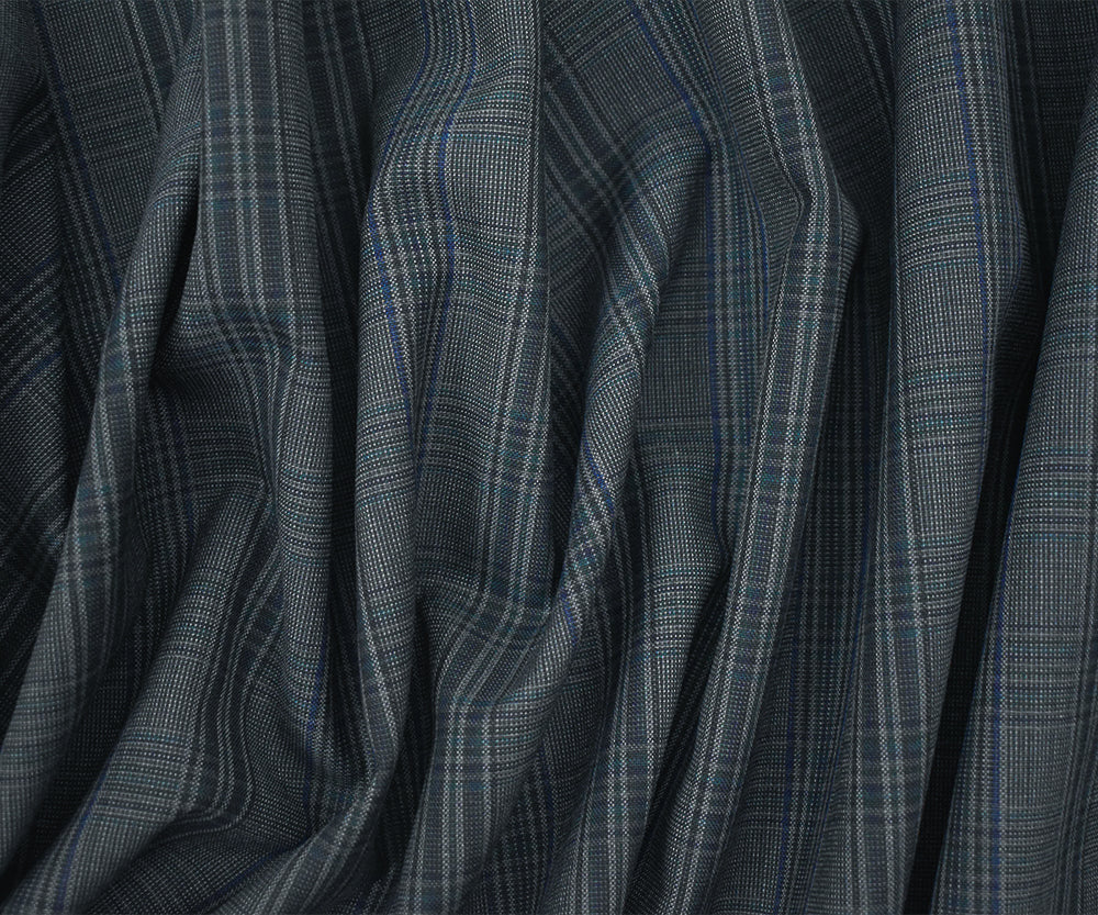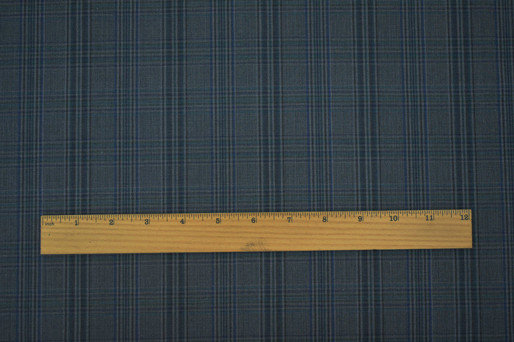 Gray-Green-Multi Poly-Wool Plaid Woven Shirting Fabric