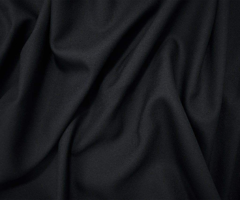 Deep Midnight Blue-Black Wool Poly Solid Twill Woven Suiting Fabric