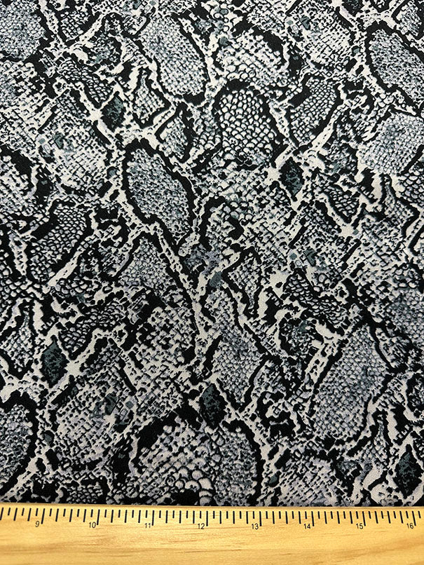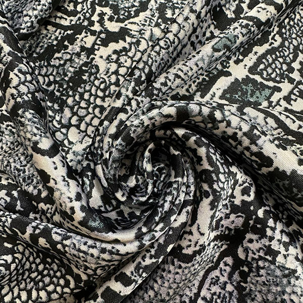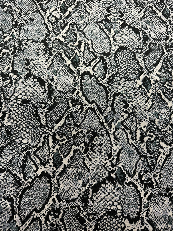 -Black and Gray Reptile Print on Light Gray Poly Charmeuse Satin Fabric