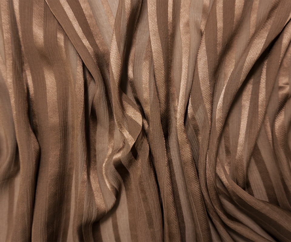 Brown Silk Vertical Stripe Chiffon-Satin Woven Fabric