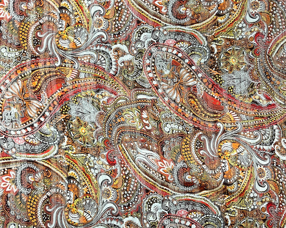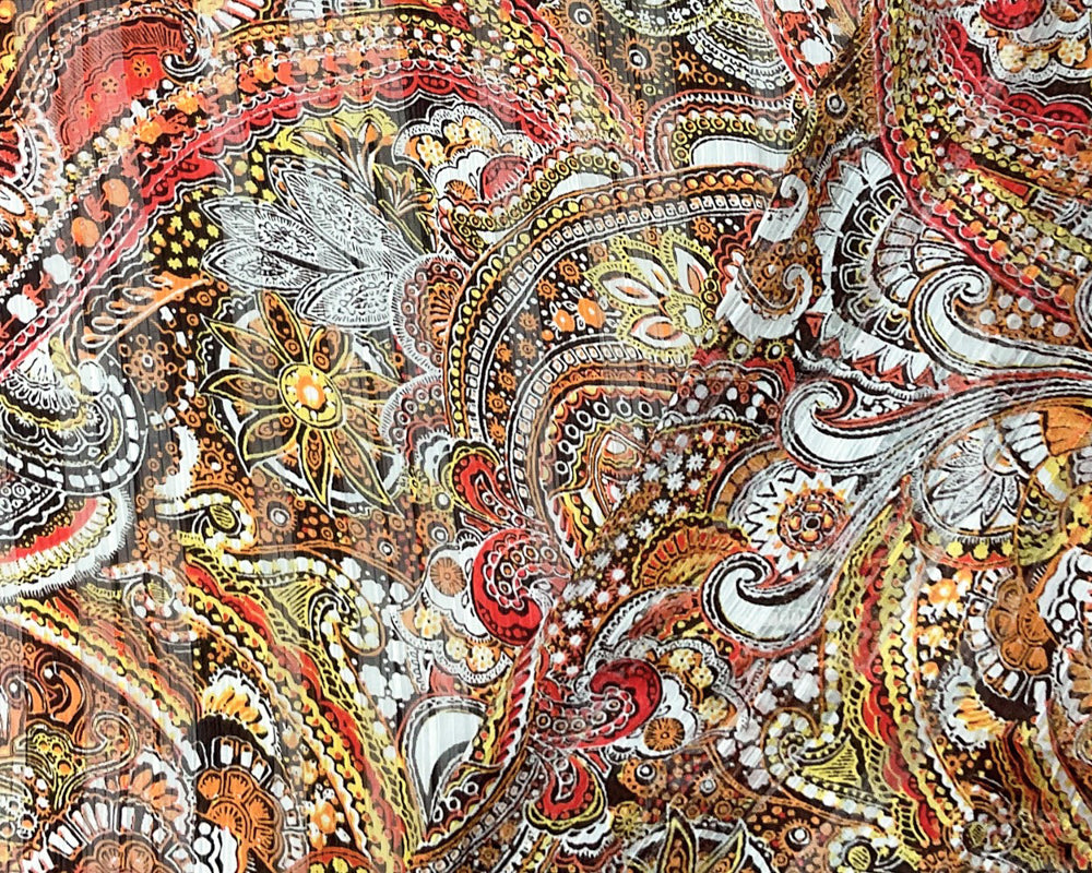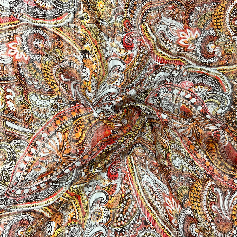 Orange-Multi Paisley Print Satin Stripe Chiffon Woven Fabric
