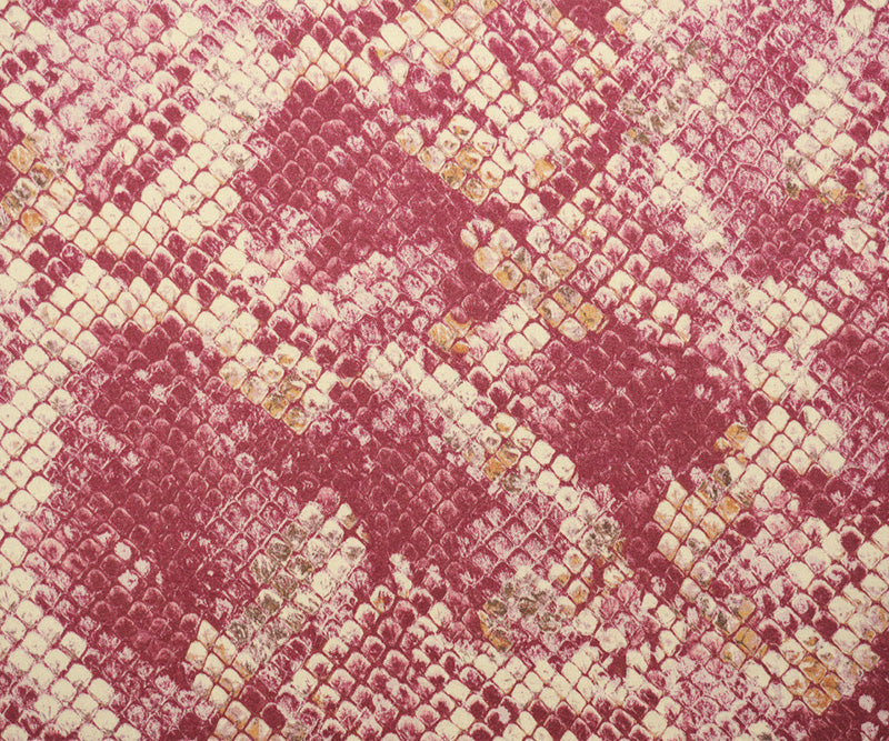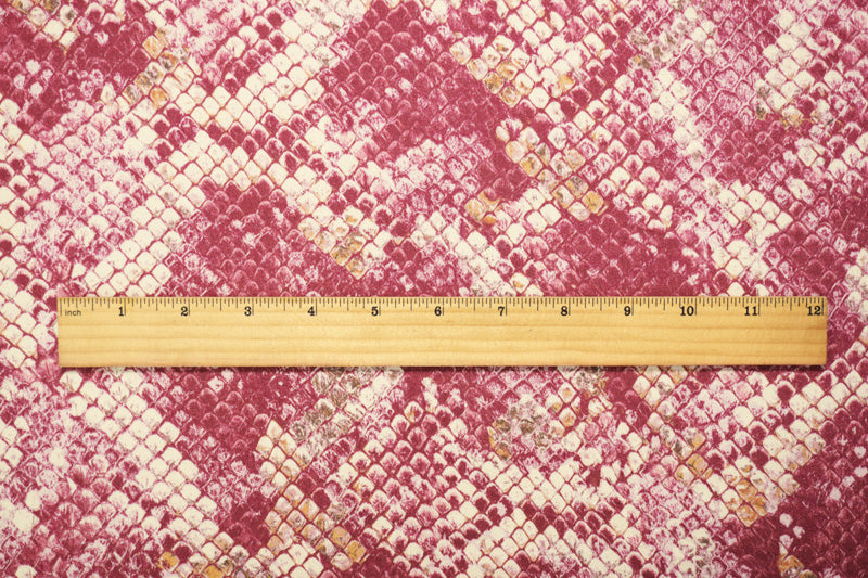 Pink-Beige-Red Rayon Reptile Printed Twill Satin Woven Fabric