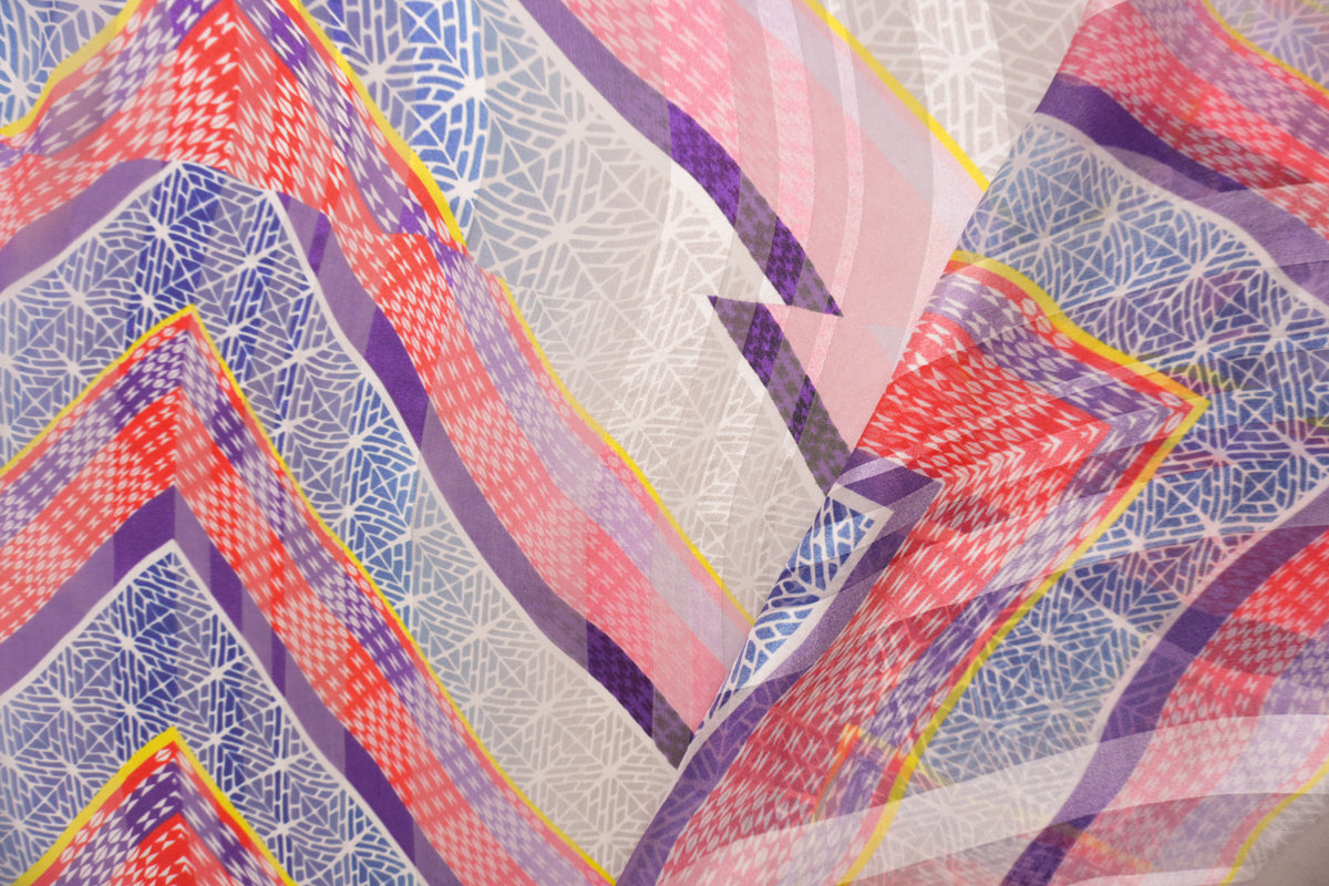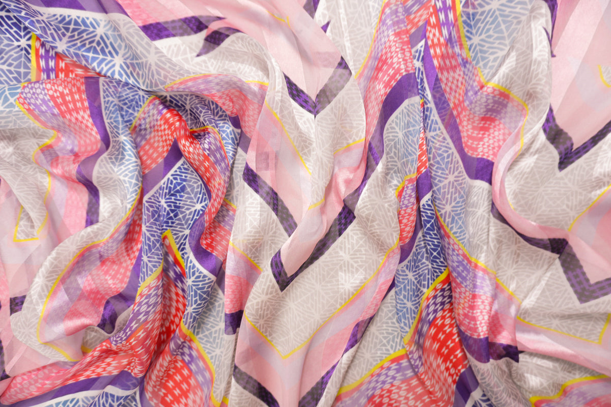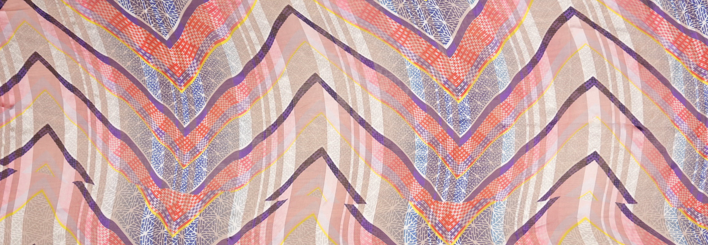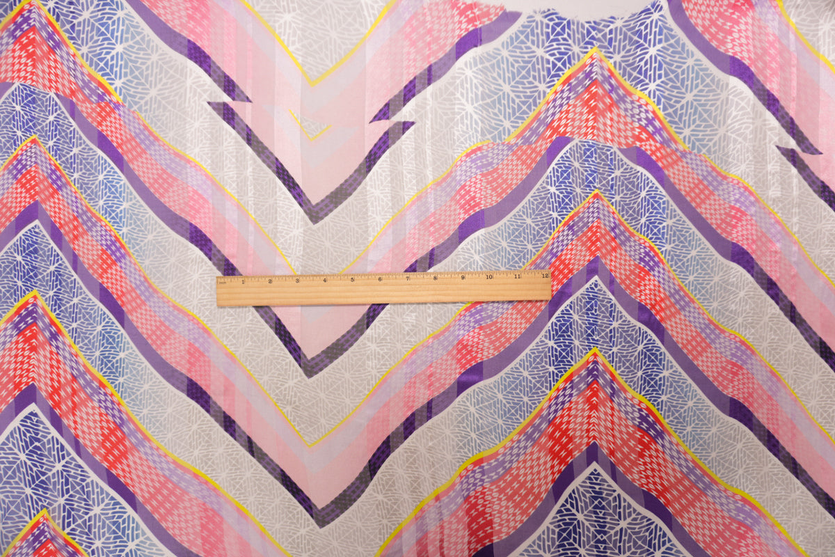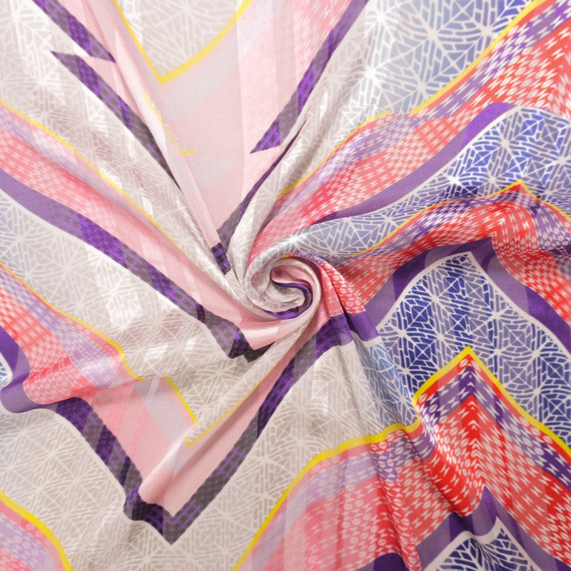 Red-Multi Silk Abstract Chevron Print Chiffon Satin Woven Fabric