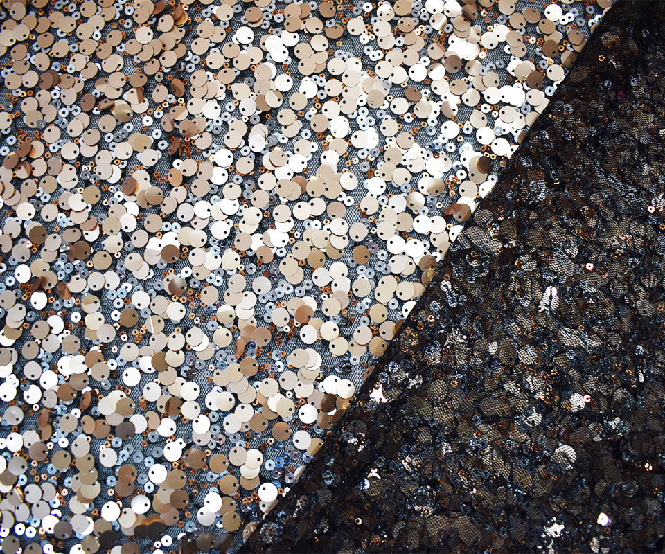 Black-Rose Gold-Multi Poly Abstract Sequined Tulle Mesh Fabric