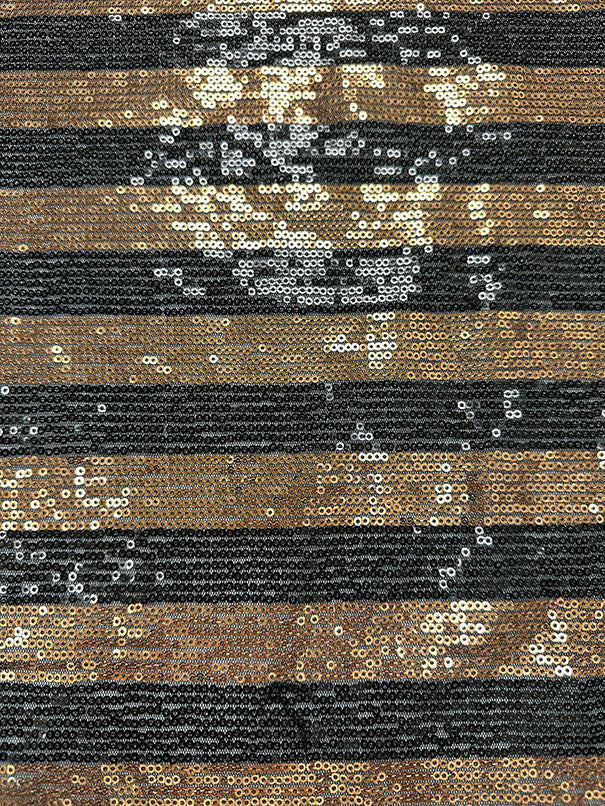 Copper and Black Stripe Sequin Mesh Fabric