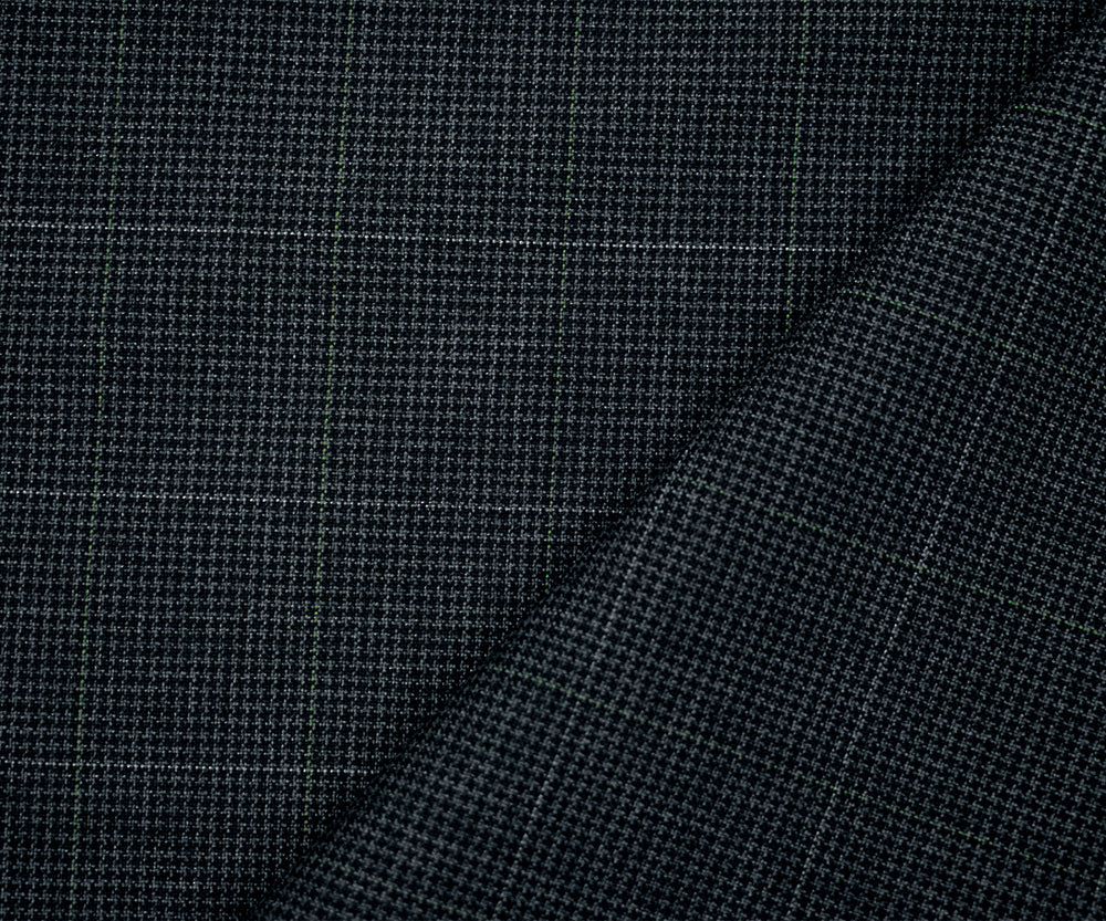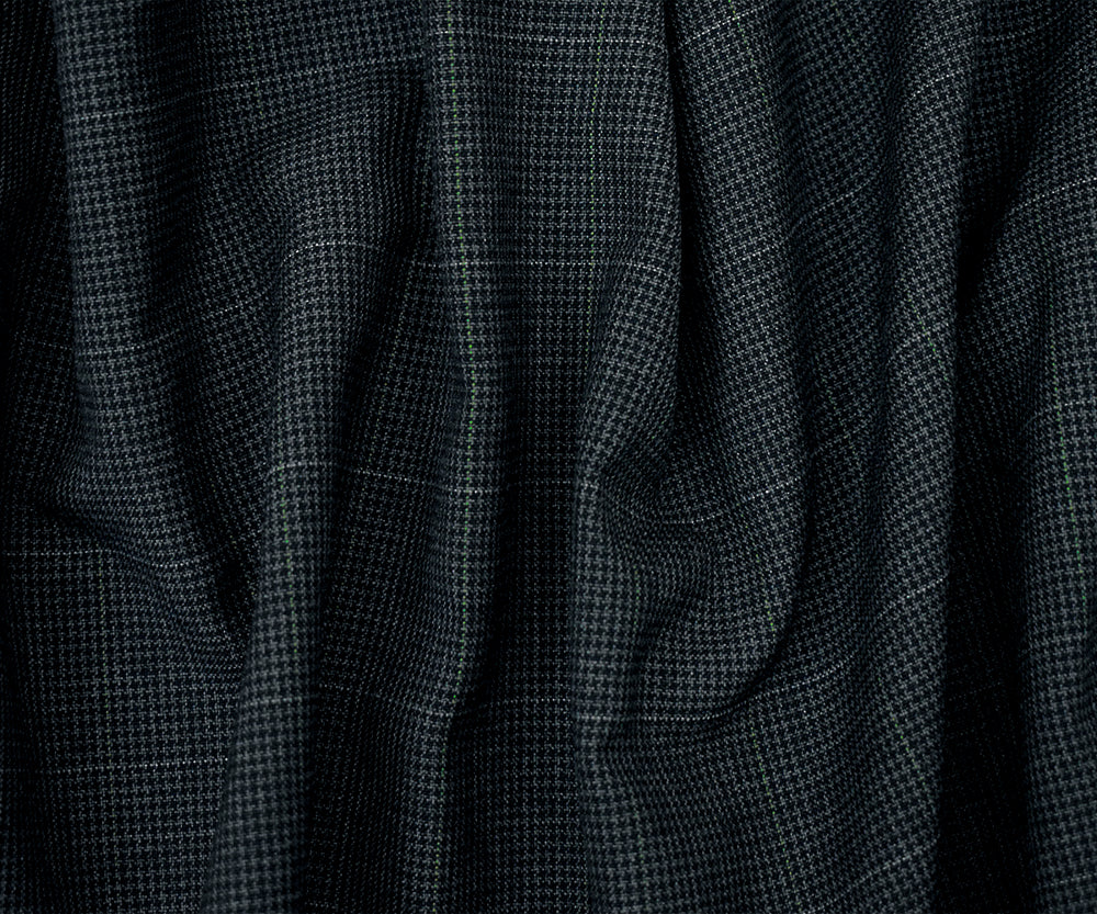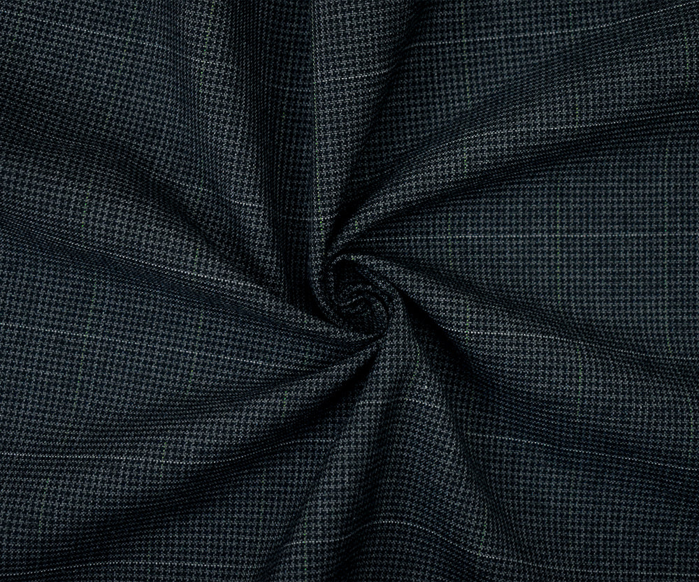Black-Gray Polyester-Wool Houndstooth Check Shirting Fabric