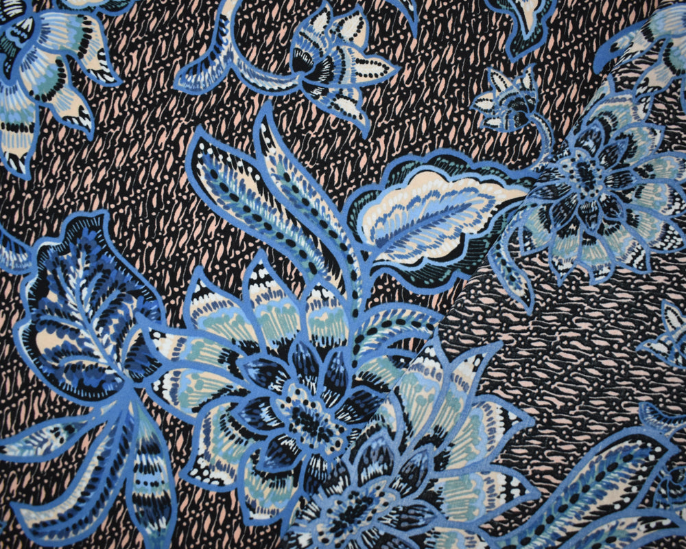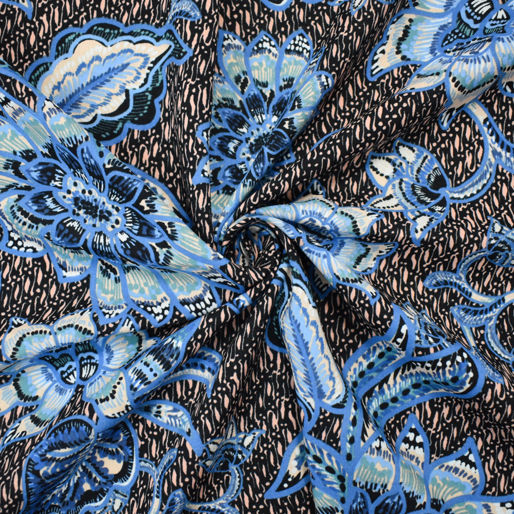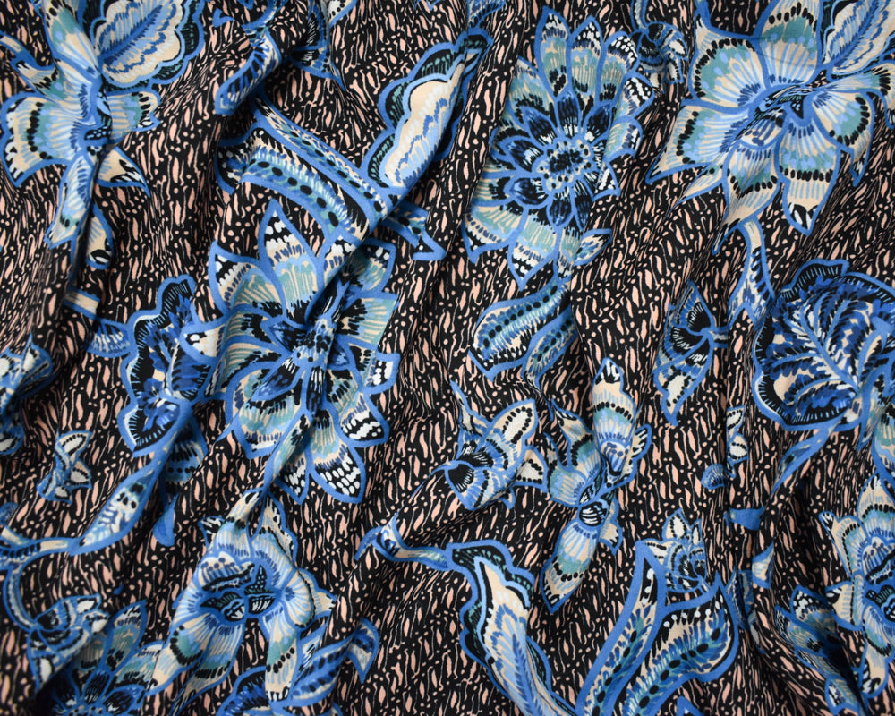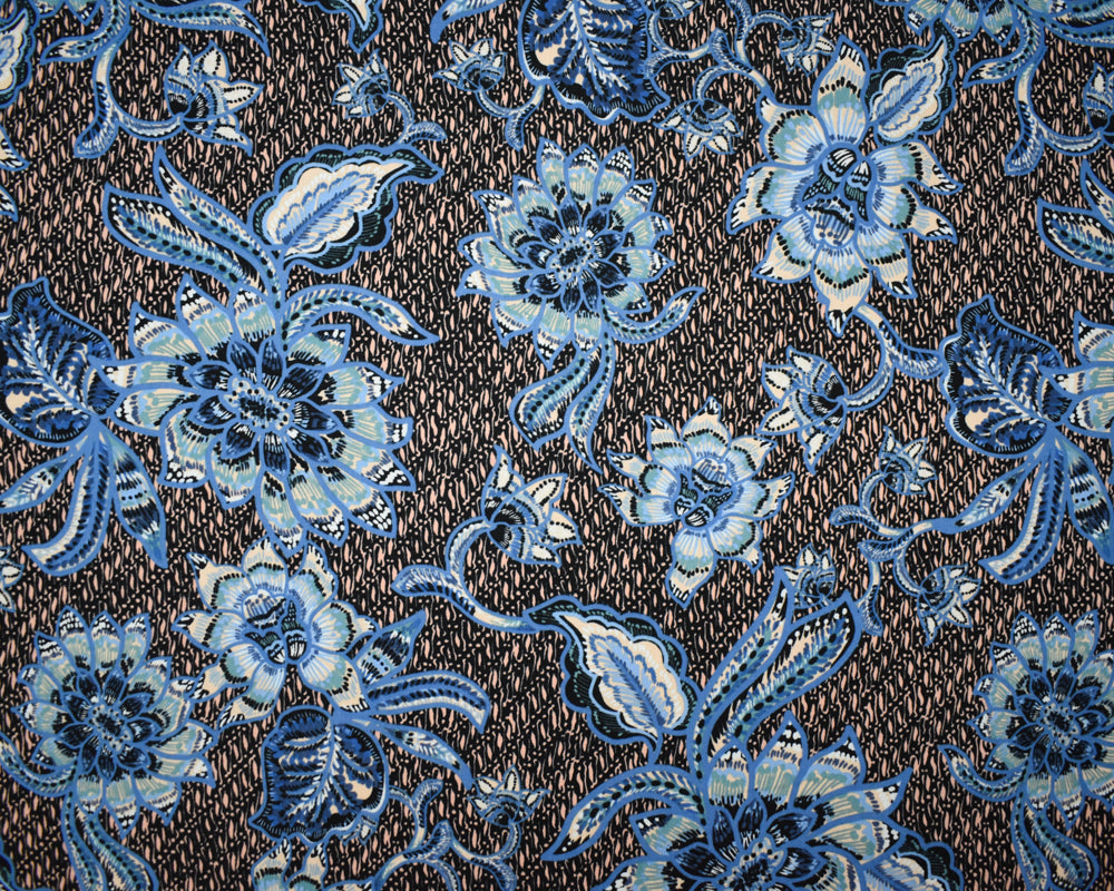 Blue-Peach-Multi Cotton-Rayon Floral Printed Lawn Woven Fabric