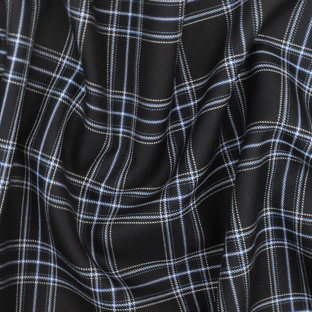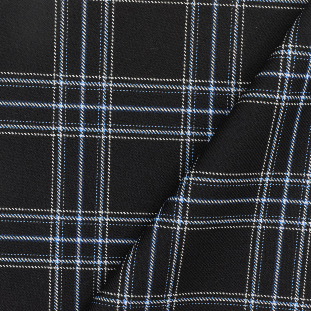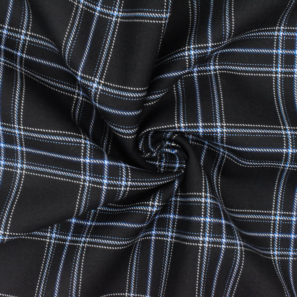 Cold Black-Blue-Multi Plaid Poly-Wool Twill Woven Fabric