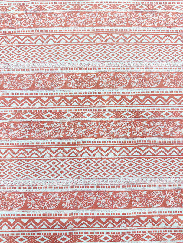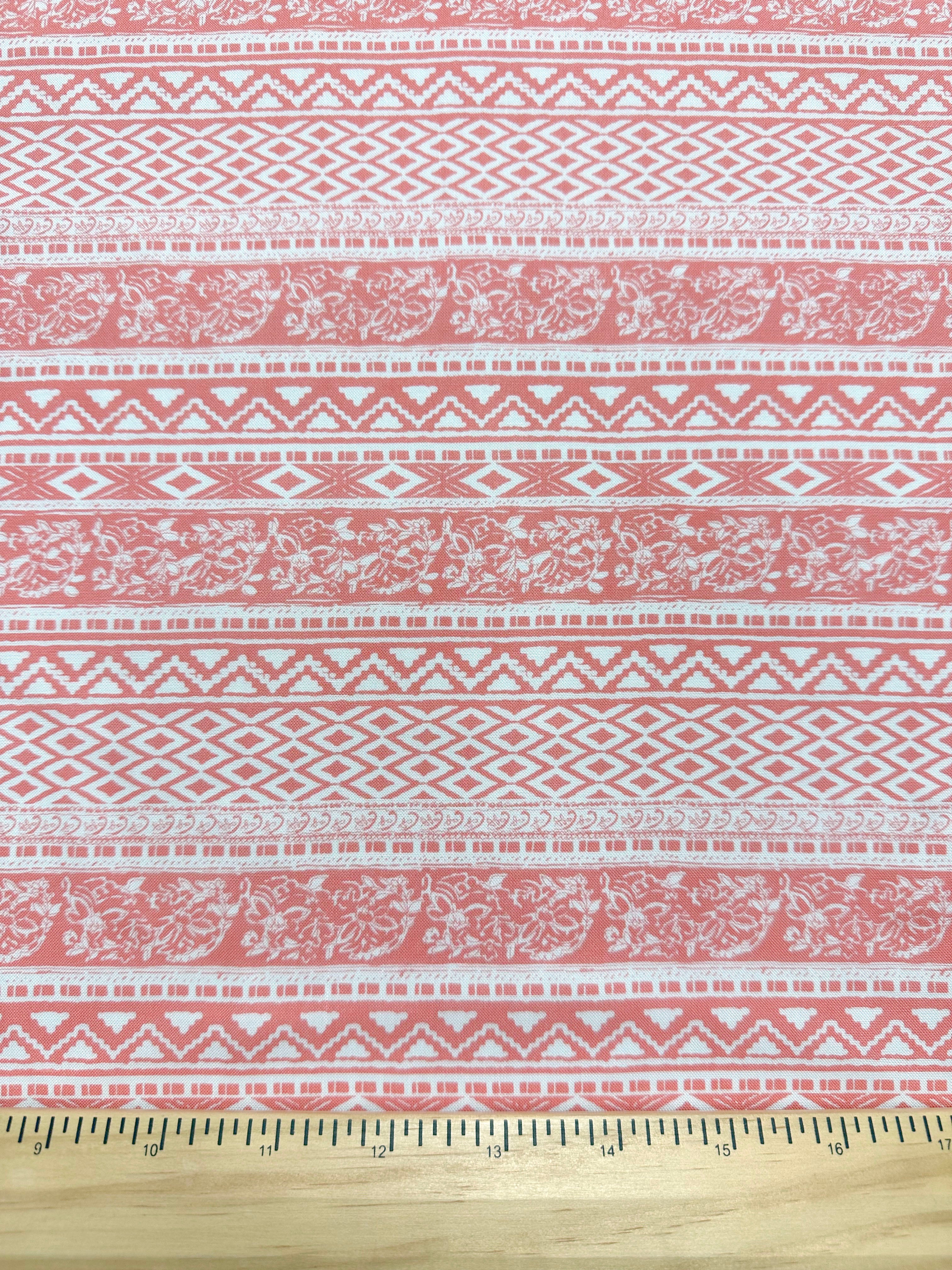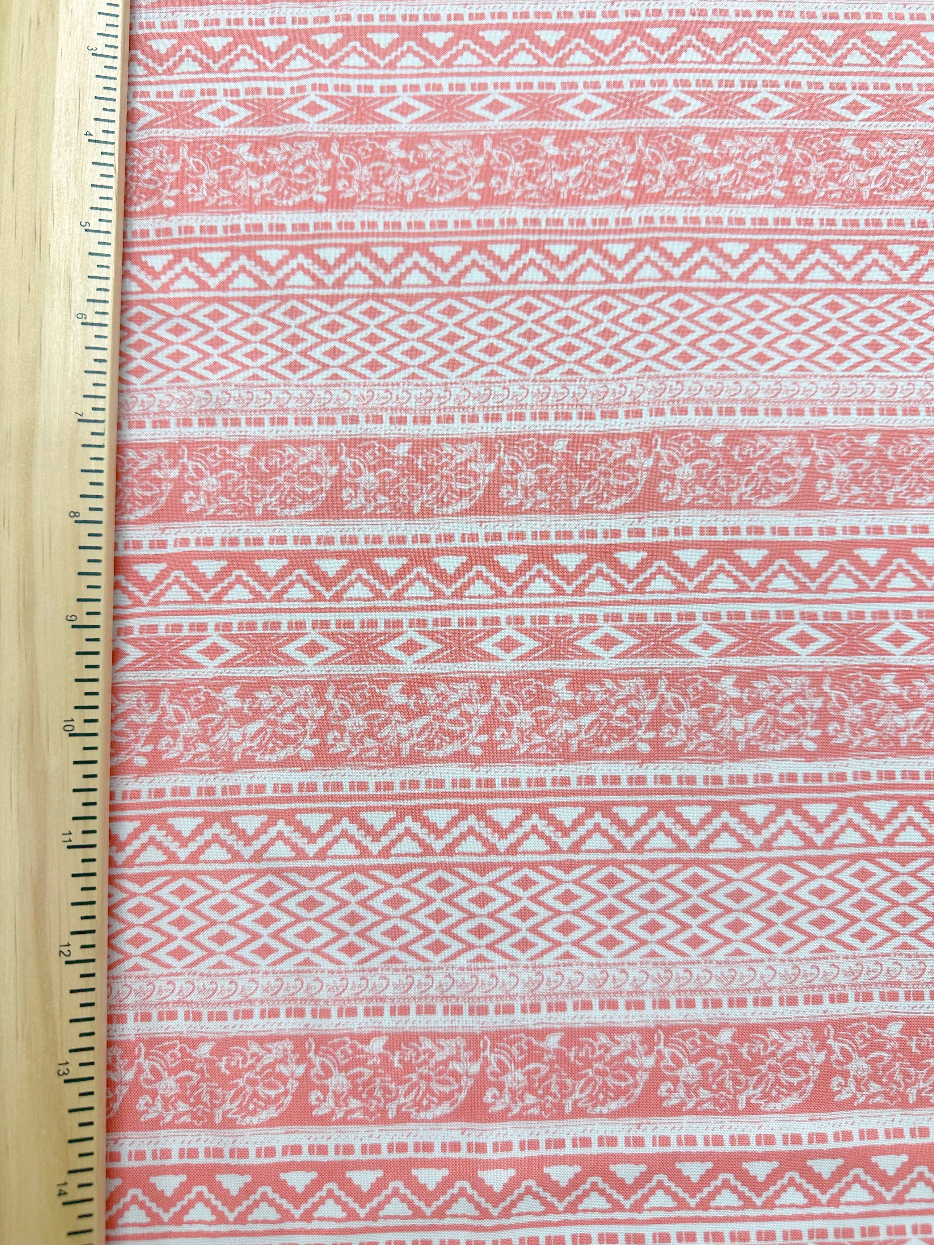 Coral and White Multi Stripe Print Rayon Challis Fabric