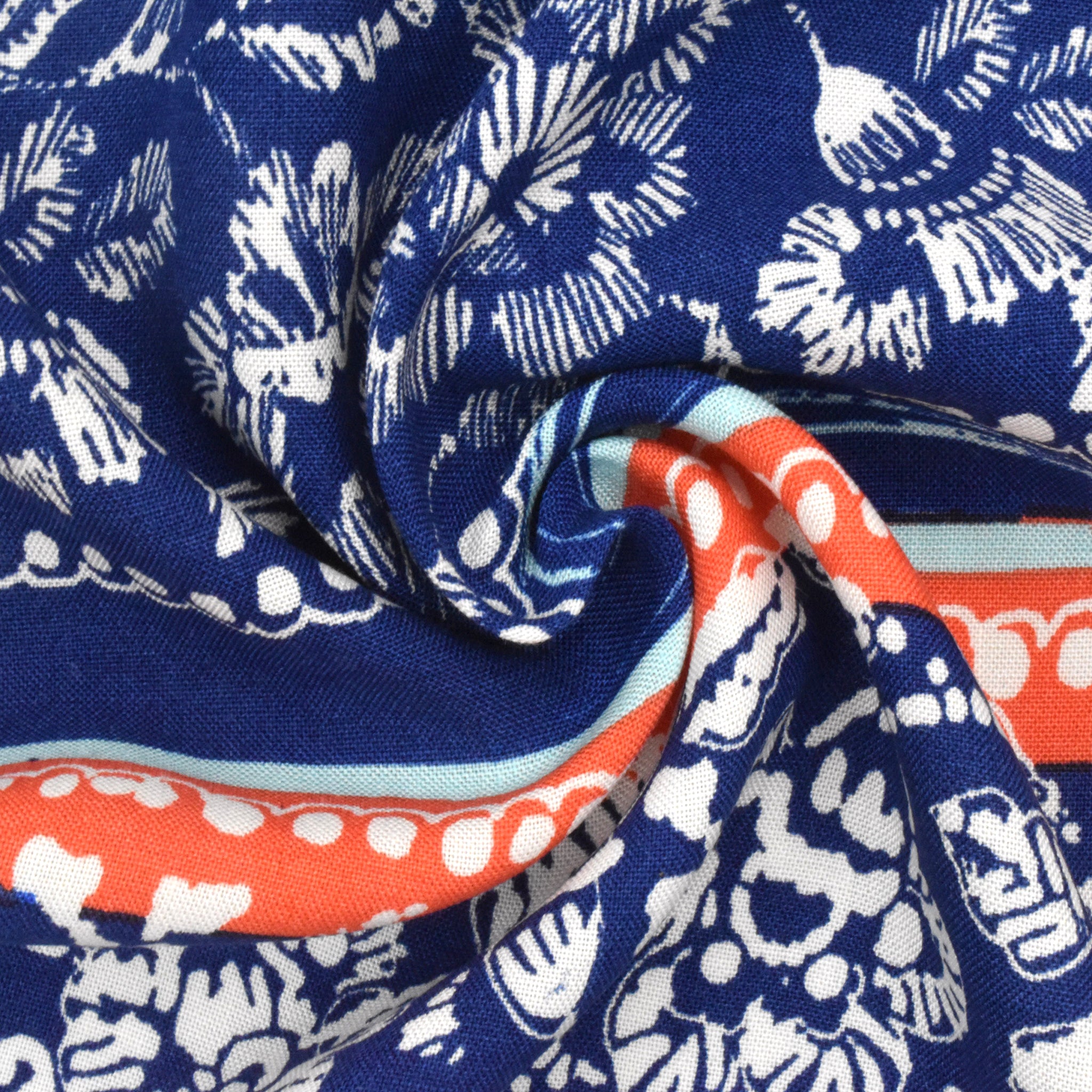 Dark Ink Blue-White-Multi Stripe Floral Printed Woven Fabric