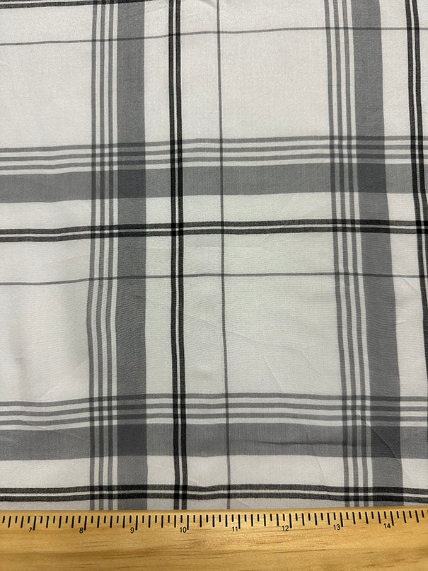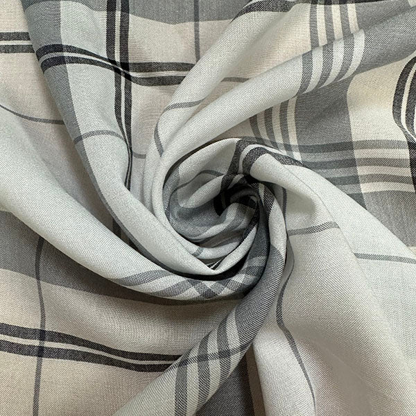 Gray Plaid Print Rayon Lawn Fabric