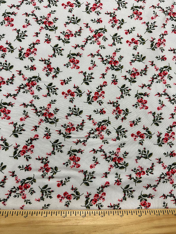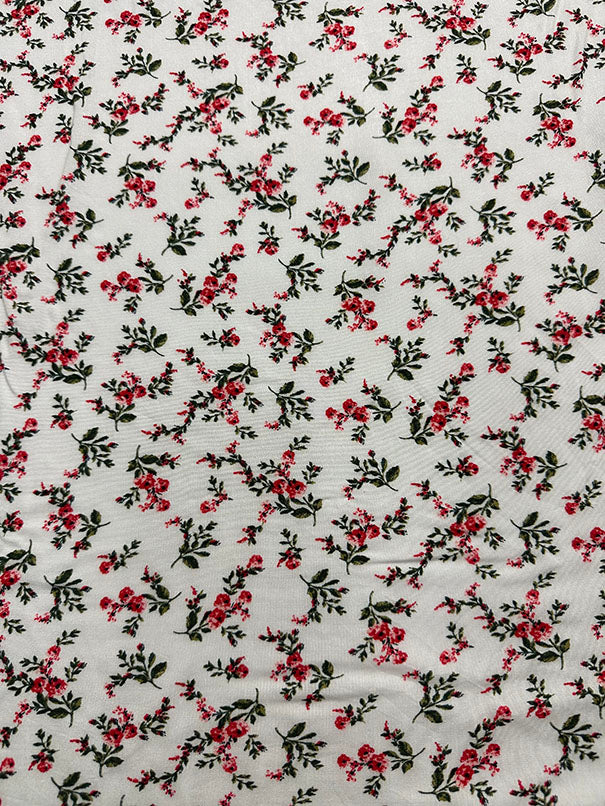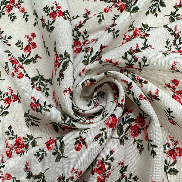 Off White Floral Print Rayon Challis Fabric