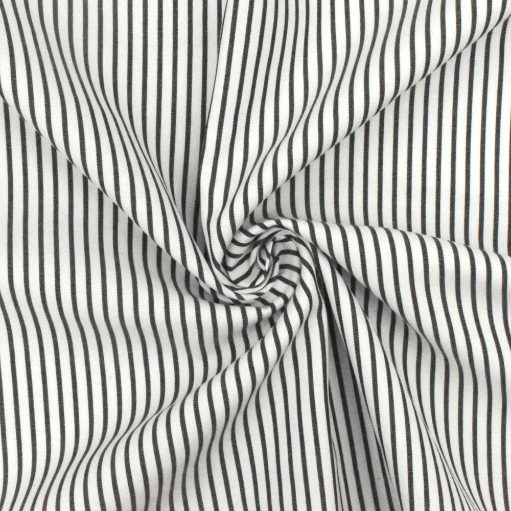 Simple Black-White Stripe Polyester Shirting Woven Fabric